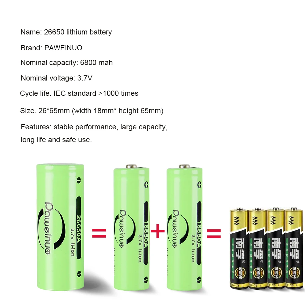 powered by18650 or 26650 rechargeable battery