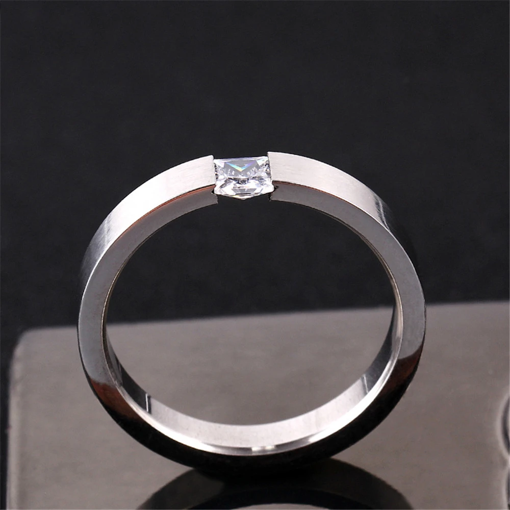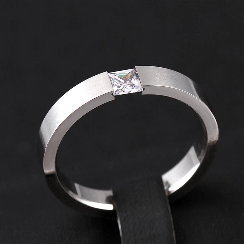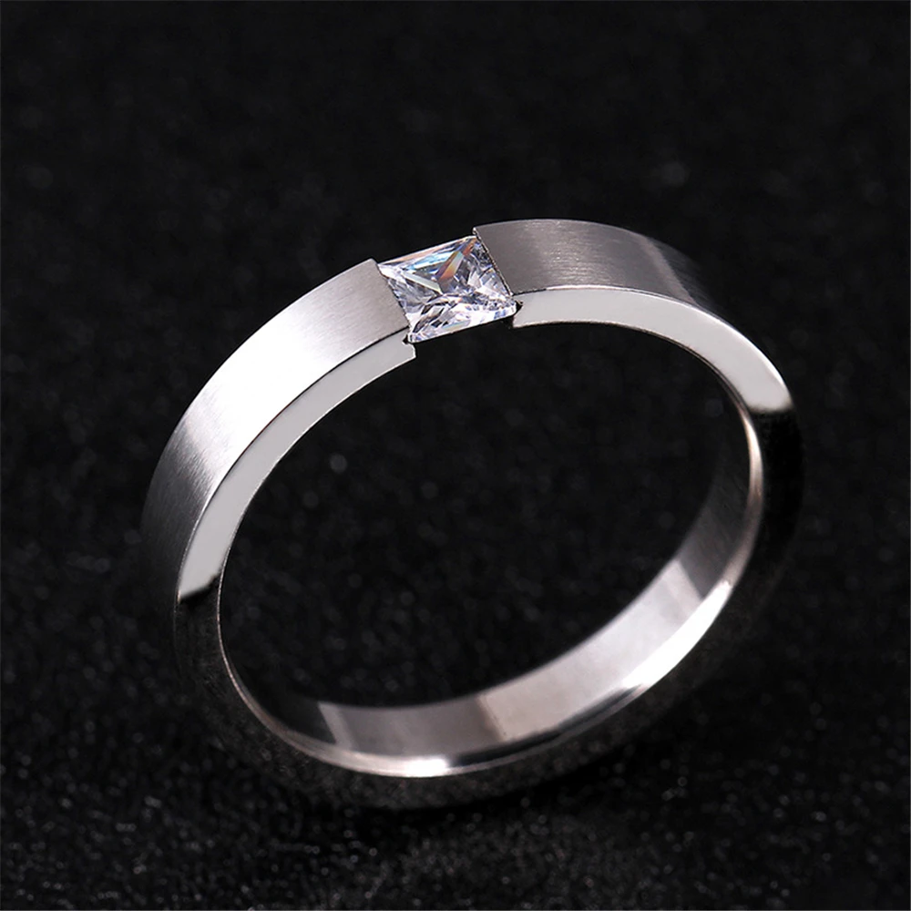 JZ-426 стильный 4 мм ширина матовая поверхность с инкрустацией квадратный Циркон нержавеющая сталь, кольцо, безвкусный. Для женщин. JZ-426
