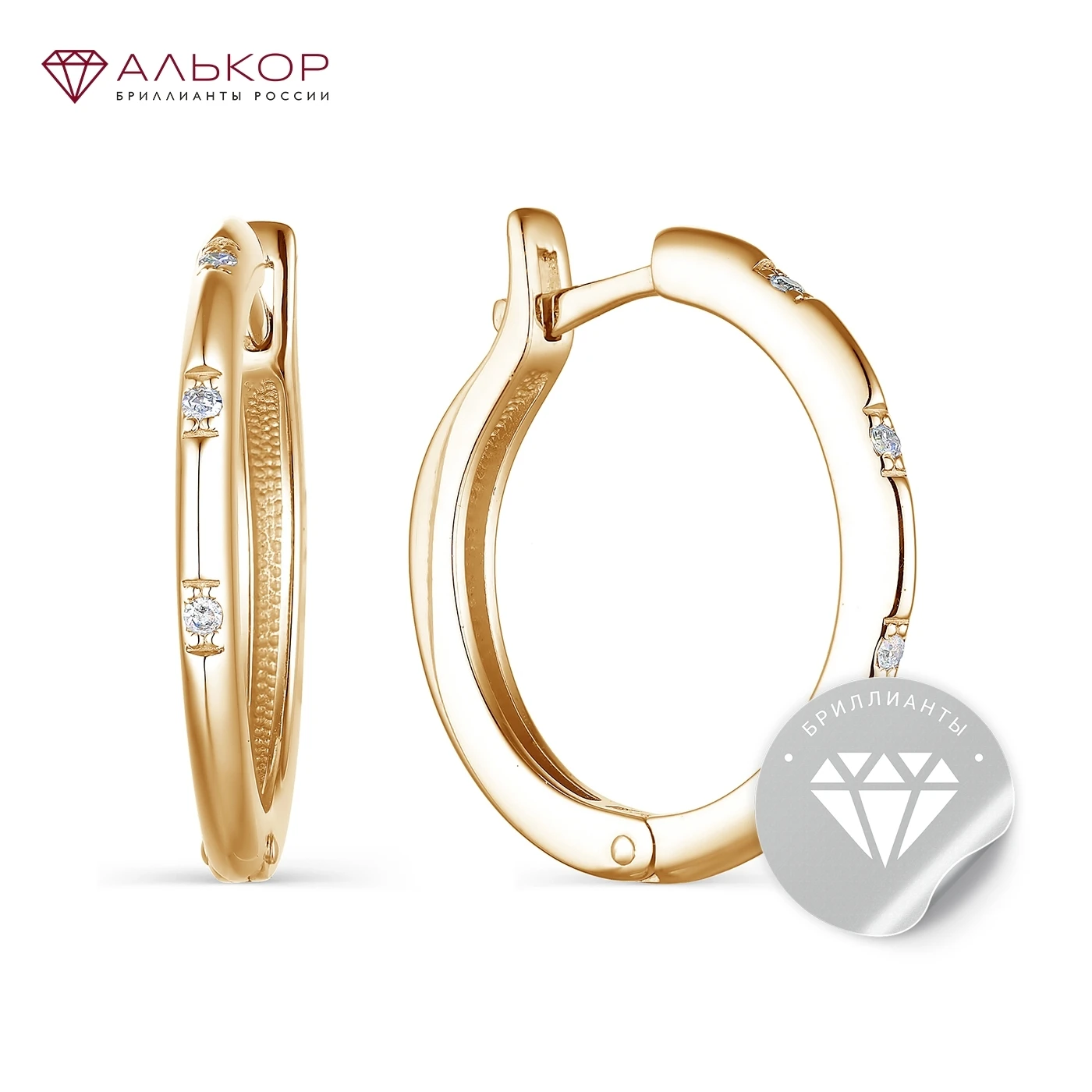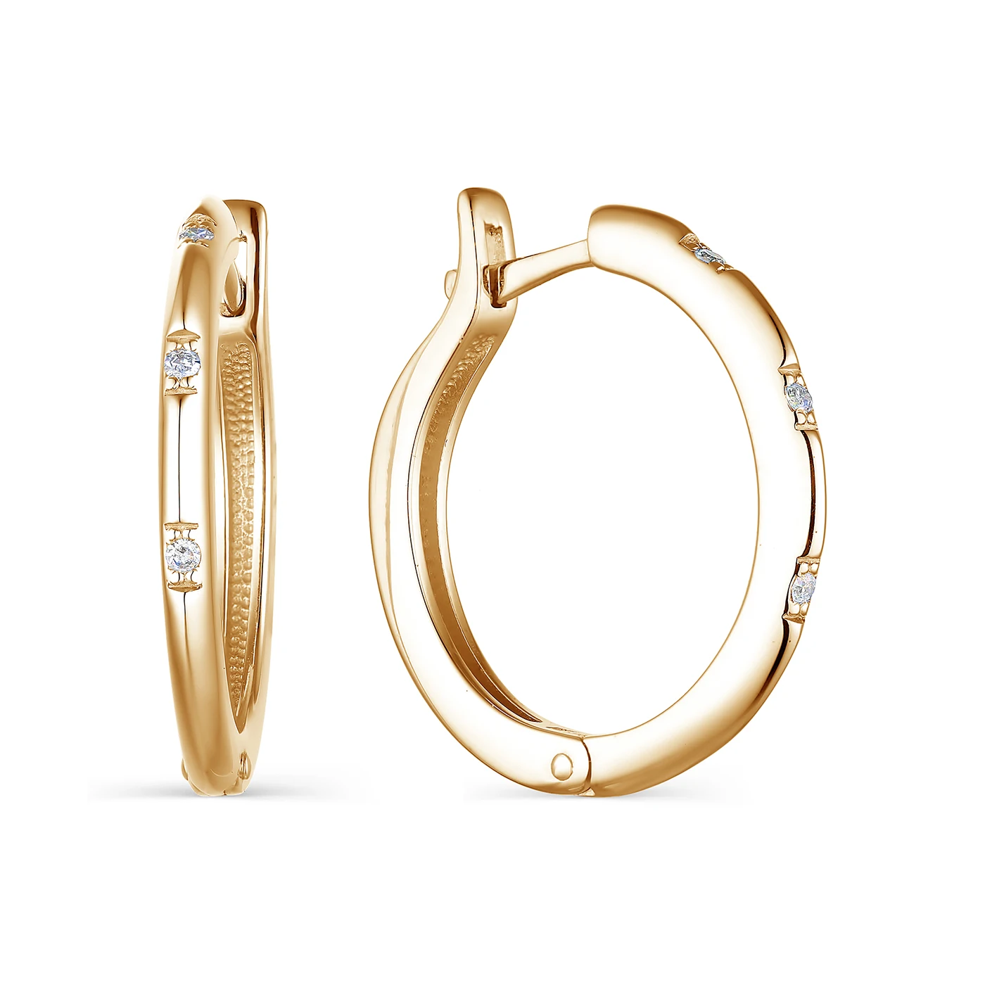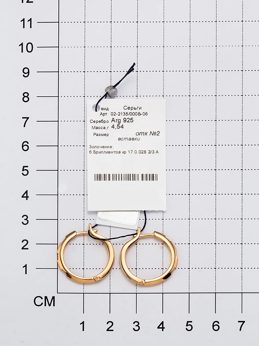 Женские серьги конго (кольца) АЛЬКОР из позолоченного серебра 925 пробы. Вставка: 6 Бриллиантов Круг 17 200-400 2/3А, карат. вес: 0,028. Ширина изделия: 2,1 мм. Средний вес: 4,5 гр.