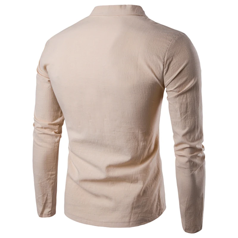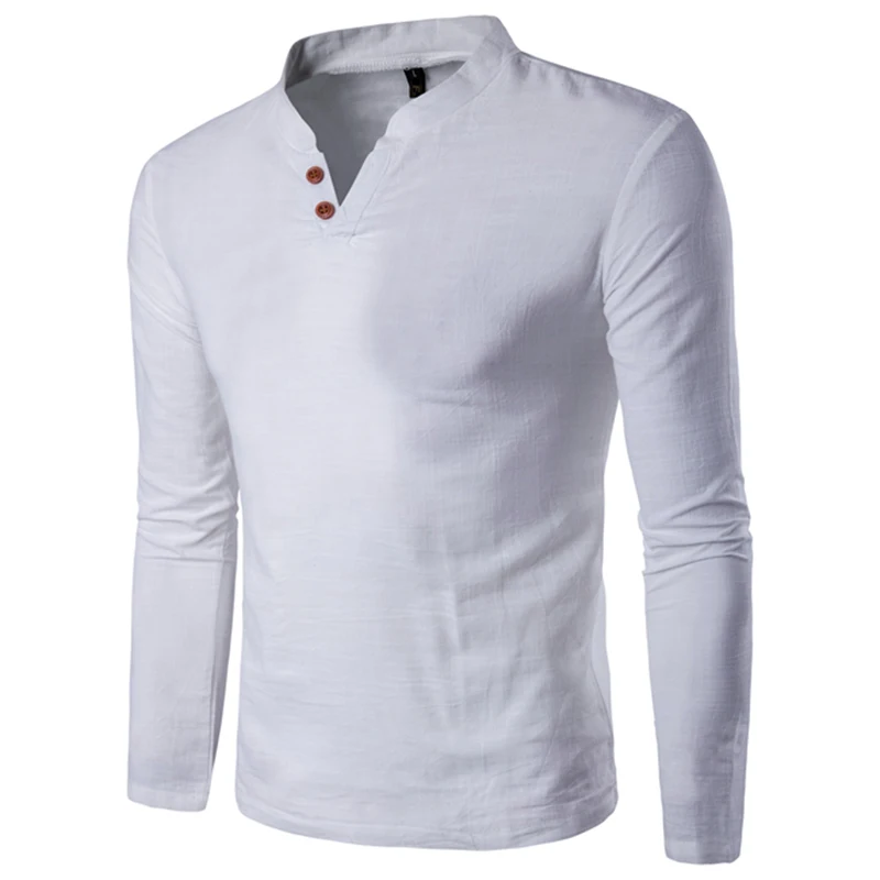 Мужские хлопковые рубашки, повседневные, простые, однотонные, с воротником-стойкой, деловые, 2021, весна-лето, мужские рубашки с длинным рукавом