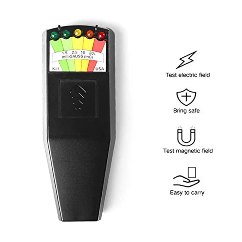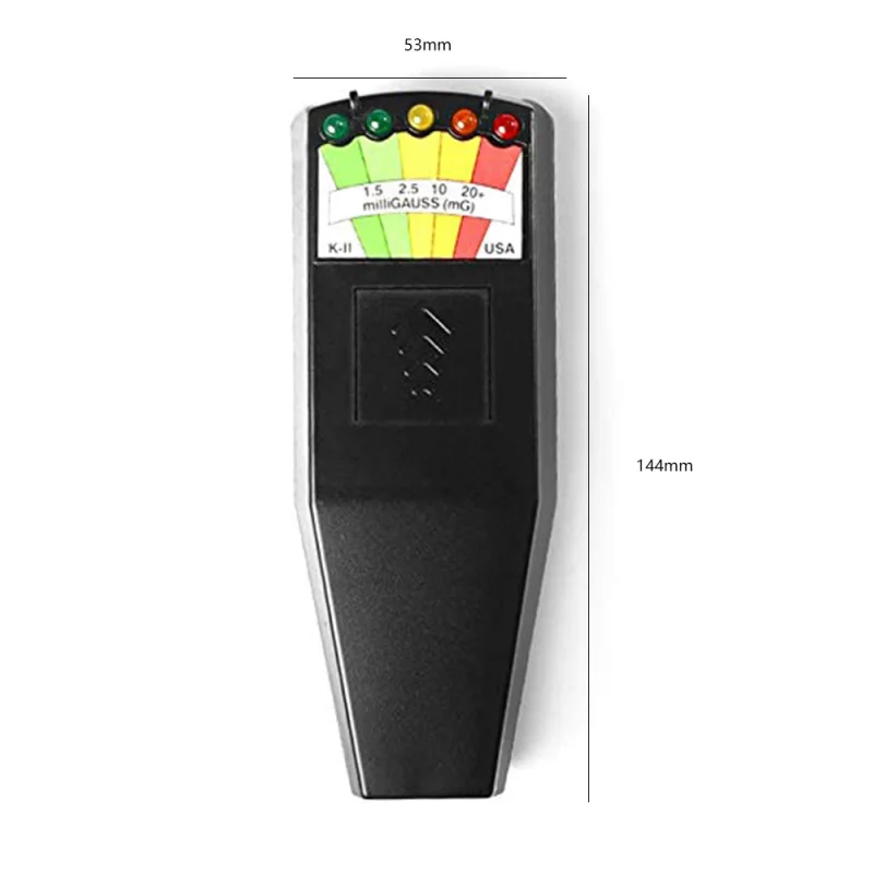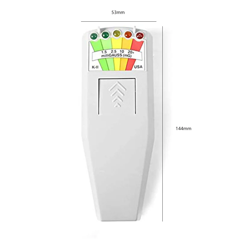 Пять весов:1 светильник обнаруживает нормальный EMF поле, то, что всегда рядом с нами. В ассортименте составляет от 0 до 1,5 мг2-й светильник (зеленый) Обнаруживает низкий уровень EMF самых различных областях, таких, как составляет от 1,5 до 2,5 мг.3rd светильник (желтый) Обнаруживает среднего уровня EMF в диапазоне от 2,5 до 10 мг.4-й светильник (оранжевый) Обнаруживает высокоуровневое EMF поле в диапазоне от 10 до 20 мг5-й светильник (красный) Обнаруживает чрезвычайно высокий диапазон EMF 20 + mG