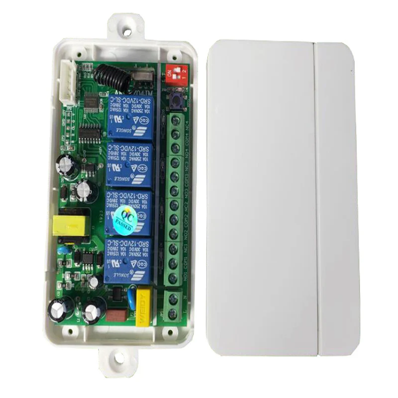 С 4 реле, оборудование, которое нужно контролировать, может удовлетворить требования двигателя вперед и назад, включить и выключить, и различные специальные процедуры контроля. Продукт имеет характеристики стабильной работы, небольшого объема и высокой чувствительности приема. В основном используется в электрических дверях, окнах, подъемном оборудовании, Лифта и безопасности промышленности и других областях. Его можно использовать вместе с пультом дистанционного управления для формирования полного набора беспроводной интеллектуальной системы дистанционного управления, которая имеет широкий спектр применений, особенно подходит для импортированной проводной системы управления дверью и окном и беспроводной системы переключения от проводной к охранной сигнализации.