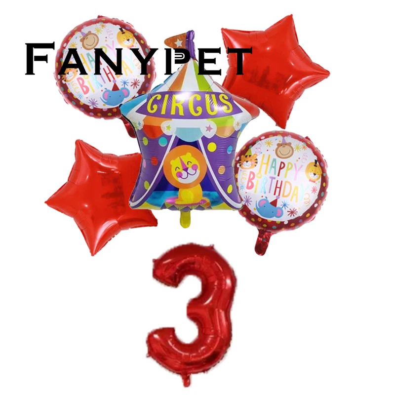 6 шт fiesta животных вечерние с днем рождения Фольга шар 30 дюймов номер набора цирк труппа льва, детская игрушка, вечеринки в честь рождения ребенка украшения