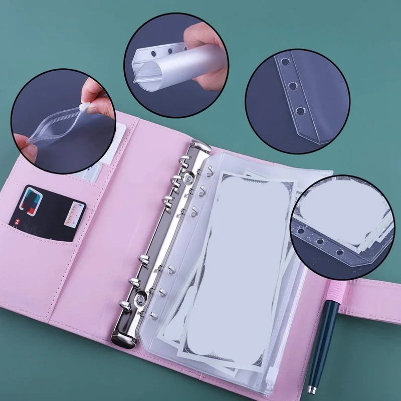 A6 ежедневник, розовый блокнот и 6 шт., папка на молнии с 6 отверстиями, бумажник-конверт для наличных