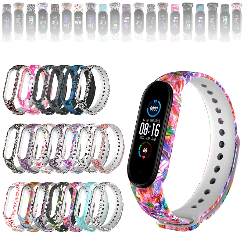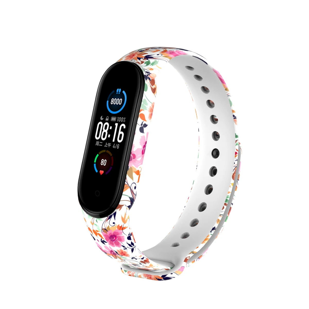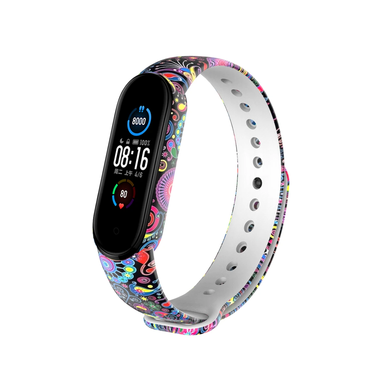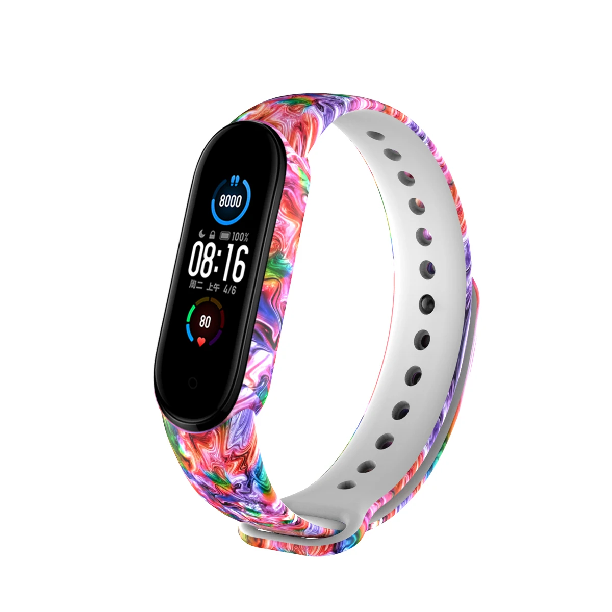 Силиконовый ремешок для смарт-часов Xiaomi Mi Band 5 / 6 Smartwatch Замена с модным принтом спортивный браслет аксессуары