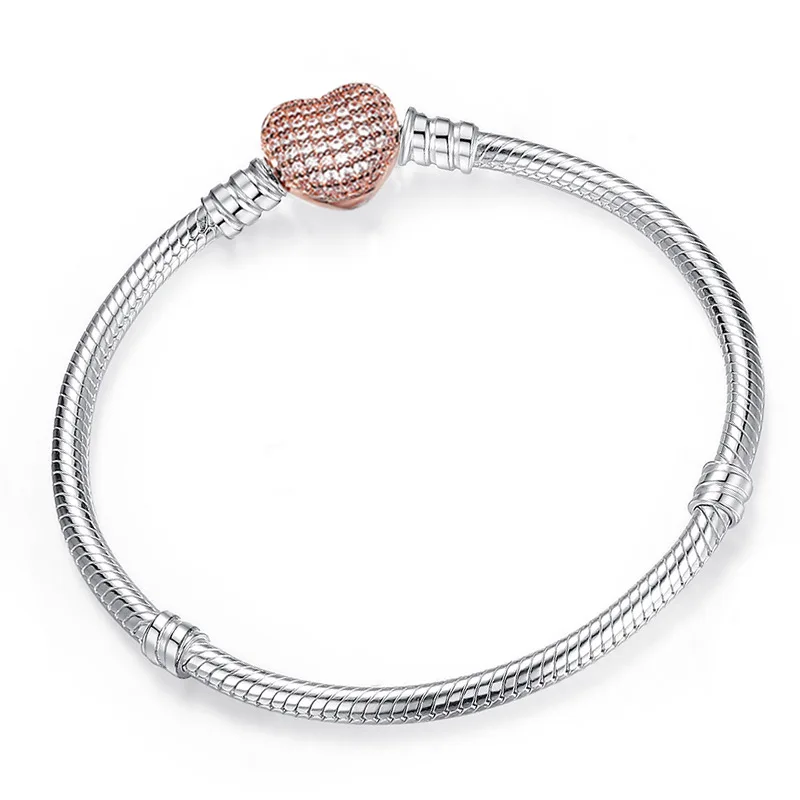 Новый браслет Pandora из циркония, цветные консервативные браслеты для девочек, базовая цепочка, персиковый браслет в форме сердца, бриллиант, замкнутый браслет