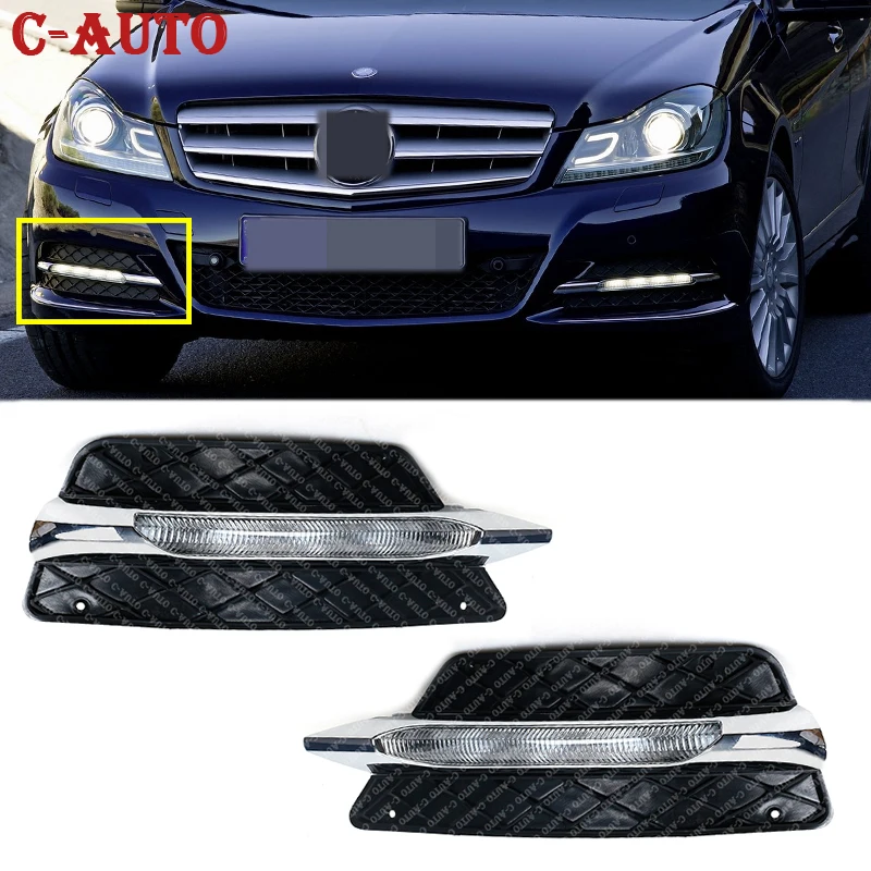 Автомобиль левый и правый передний бампер решетка литье Светодиодный противотуманной фары DRL Дневной светильник для Mercedes Benz W204 c-класс 2012 2013 2014