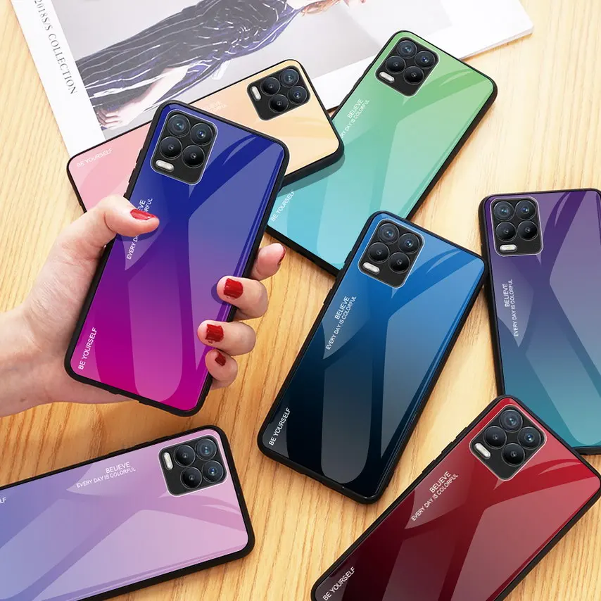 Градиент Стекло чехол для OPPO Realme 8 pro Rleame8 чехол закаленное Глянцевая задняя панель чехол для OPPO Realme 7 Pro Realme7 A9 A5 2020 Funda