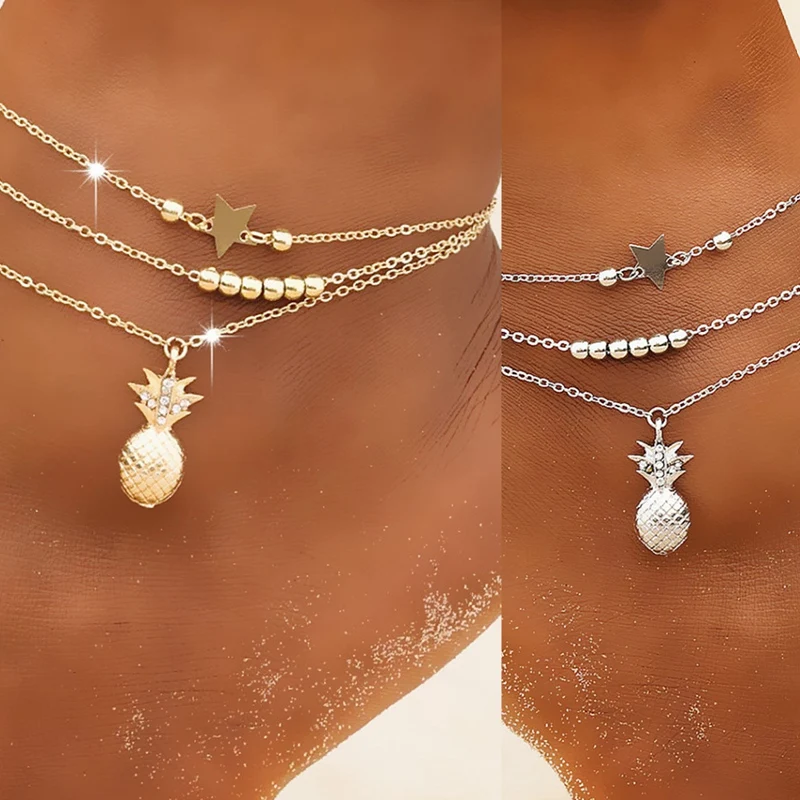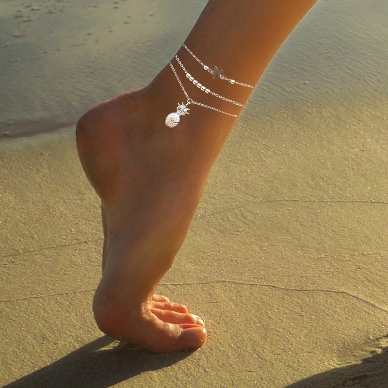 Браслеты на лодыжку для женщин, анклеты с подвеской в виде ананаса, бисером, Стильная летняя пляжная бижутерия