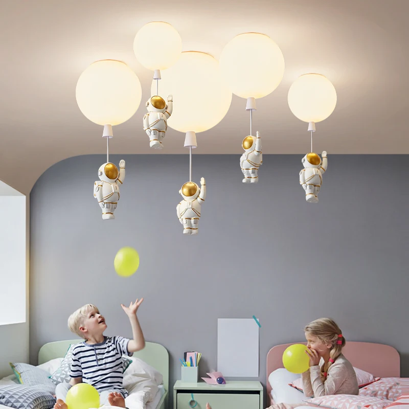 Светодиодный потолочный светильник в скандинавском стиле, лампа с мультяшным астронавтом, воздушным шаром для детской комнаты, спальни, E27, современное светильник нее украшение