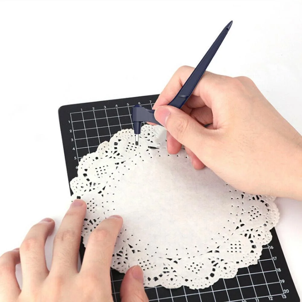ОписаниеЦвет как показаноРазмеры: 8,1x5,9x0,7 дюйм (ов)Материал: пластикЦвет: темно-синий, черный, белый, серыйПосылка 1: инструменты для резки ПК (не включая гравировальную доску)Особенности1. Режущий инструмент похож на ручку, чтобы получить желаемый рисунок быстро и легко2. В отличие от других ручных ножей, это лезвие не будет легко резать кожу человека во время нормального использования, поэтому оно очень подходит для молодых людей и любителей.3. Ручной инструмент имеет 360 градусов вращающееся лезвие, которое позволяет легко и быстро резать очень сложные формы.4. Область применения: резка бумаги, резка бумаги, изготовление шаблонов, планирование наклеек, художественное оформление, графический дизайн, архитектура, скрапбукинг, виниловая надпись и многое другое.