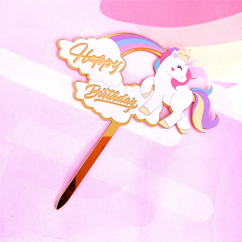 Радуга животных Лошадь Единорог Топпер для торта «С Днем Рождения» торт Топпер вечерние десертный декор для детского душа выпечки
