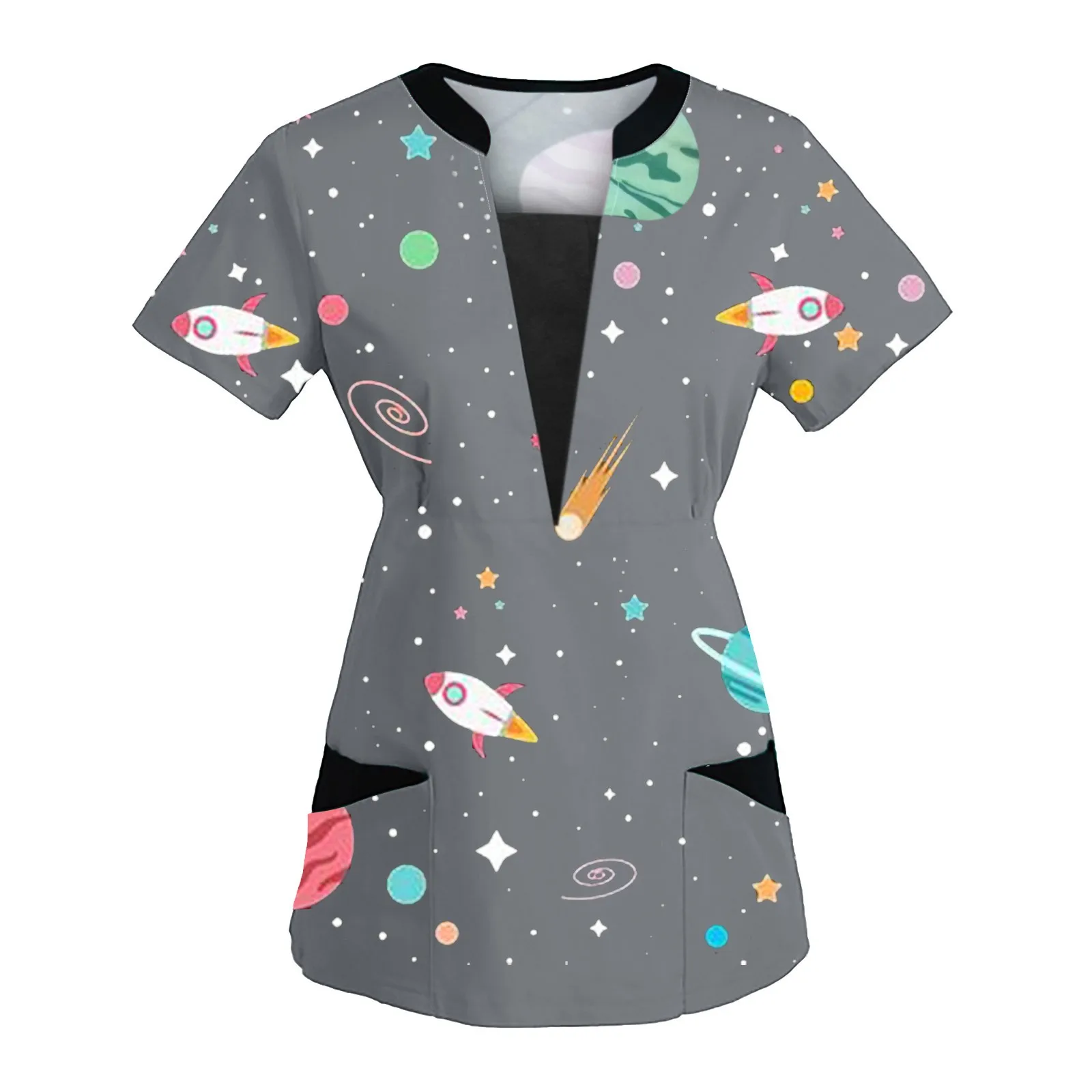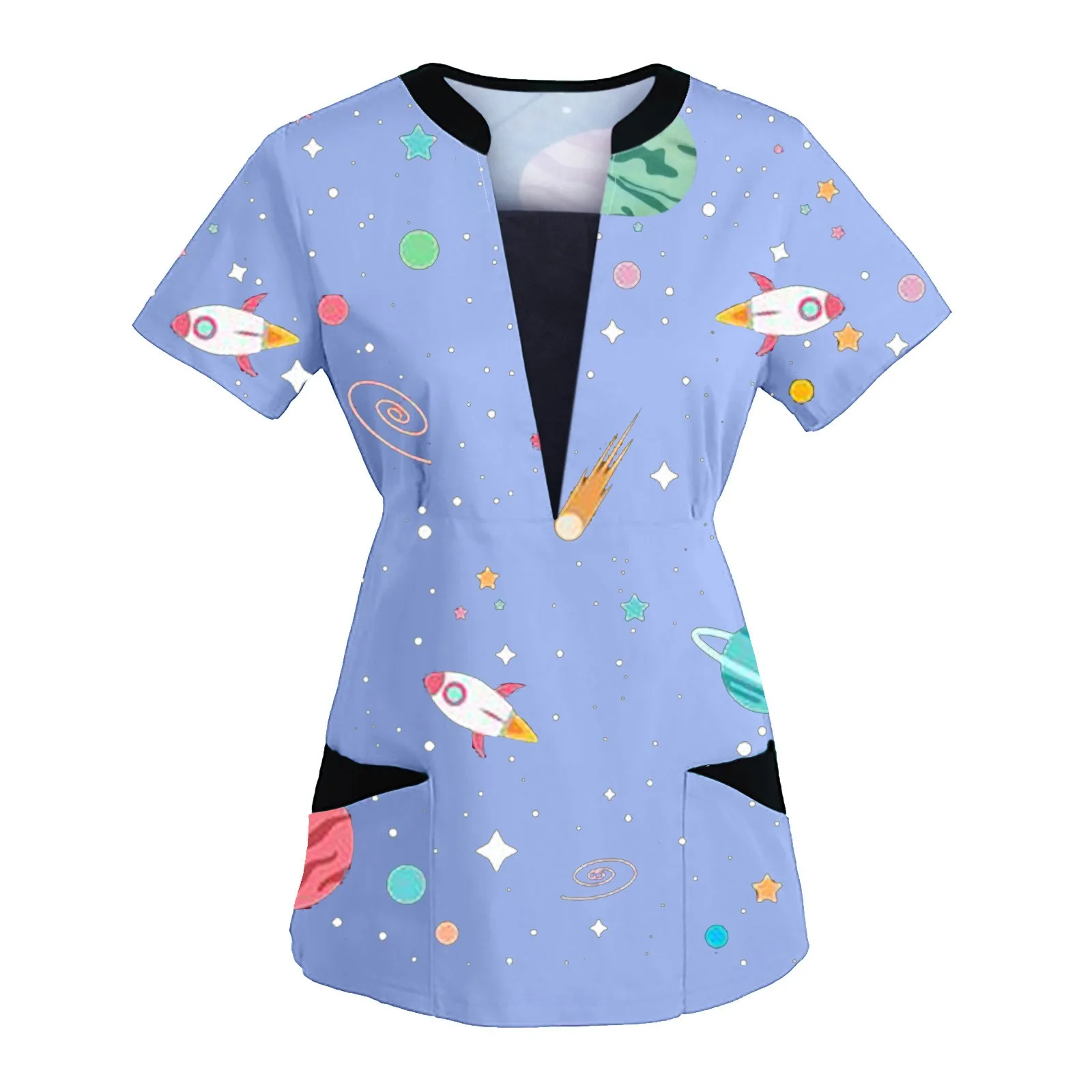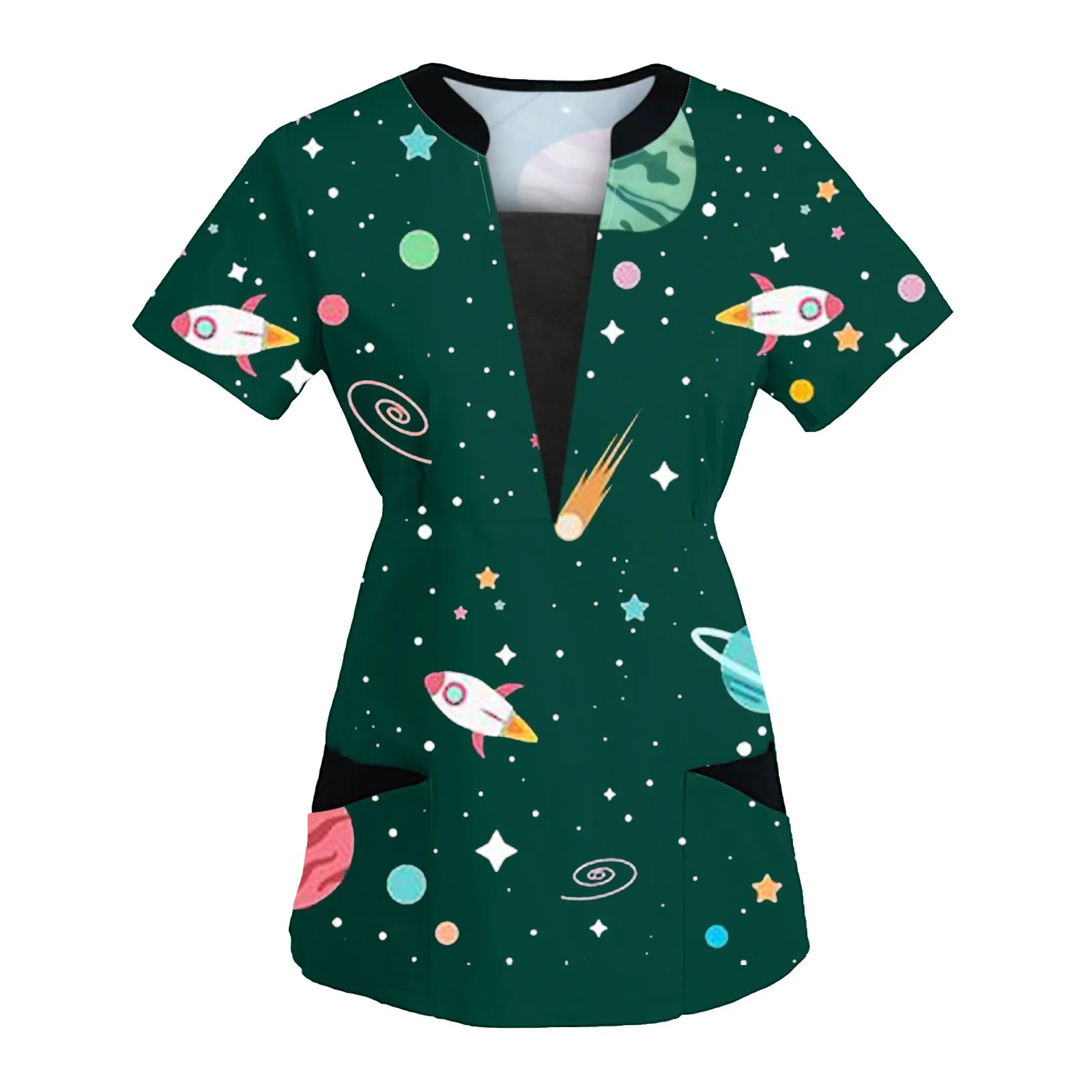 Женская блузка с коротким рукавом, V-образным вырезом и принтом