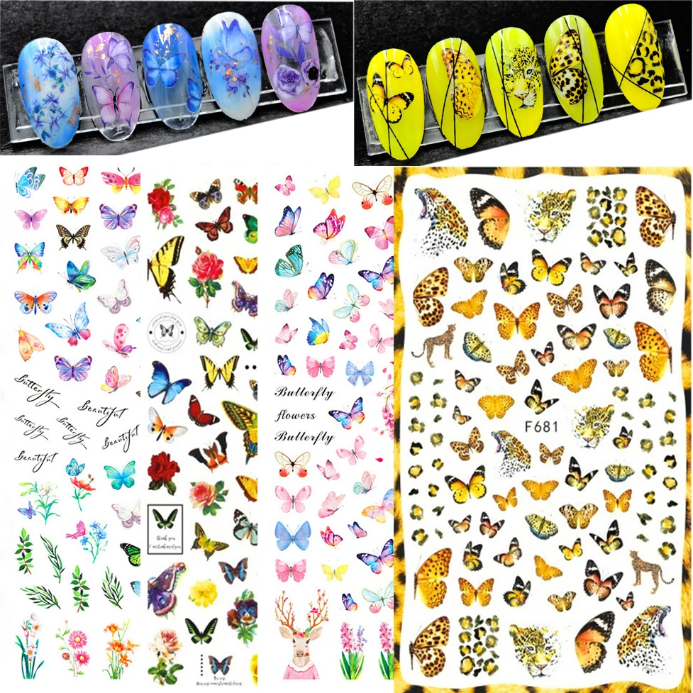 Красивые синие наклейки для ногтей художественные бабочки цветы черный розовый слайдер для ногтей Водные Наклейки для маникюра DIY украшения оптовая продажа