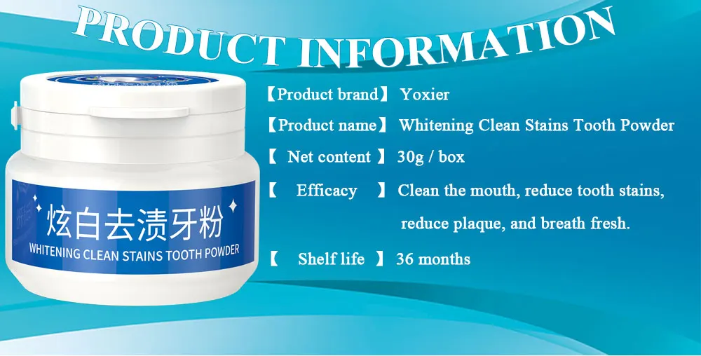 Отбеливающий порошок для чистки зубов Yoxier, 30 г, защита от ярких...