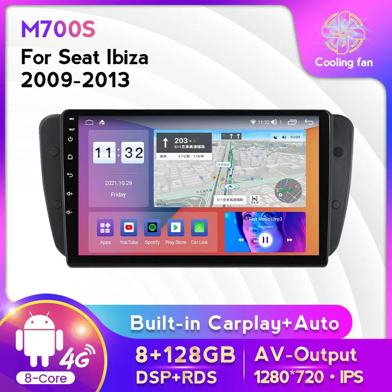 Автомобильное радио 8G + 128G Android 11 GPS для Seat Ibiza 6j 2009 2010 2012 2013 GPS навигация 2 Din экран Радио Аудио мультимедийный плеер