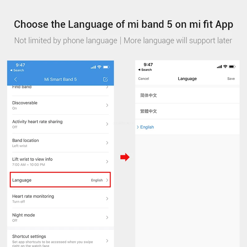Вопрос: это глобальная версия? О: Нет, это китайская версия, и Базовая версия, и версия NFC поддерживают английский, китайский сейчас, Xiaomi включит больше языков через официальное обновление прошивки. Вы всегда можете выбрать понравившийся Вам язык для mi band 5 через приложение Mi Fit. В: Должен ли я купить глобальная версия? A: Только базовая версия имеет глобальная версия, не стоит купить общая оценка, потому что кроме розничную упаковку и руководство пользователя отличается, Global one имеет все те же функции с CN one, и через приложение mi fit вы можете выбрать язык, который поддерживается для mi band 5.