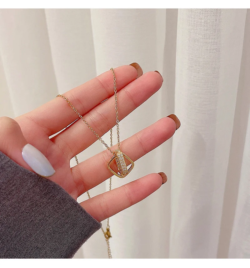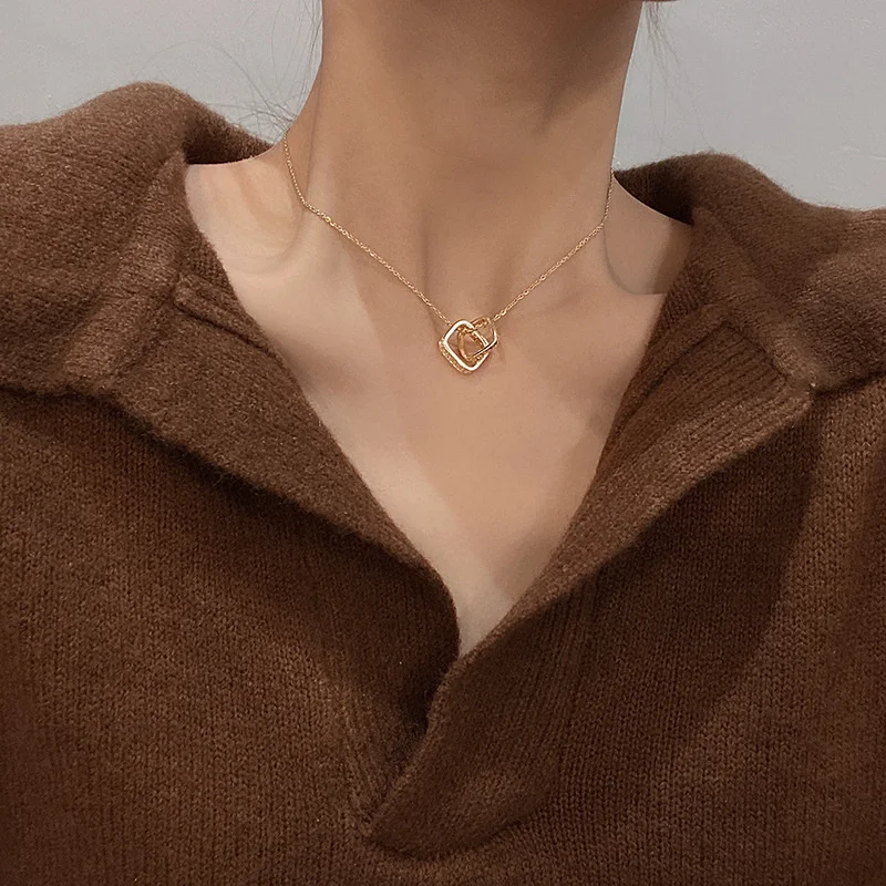 Berserk ювелирные изделия в подарок новые полые геометрические искусственные микро инкрустированные квадратные цепочки до ключиц ожерелье для женщин и девушек