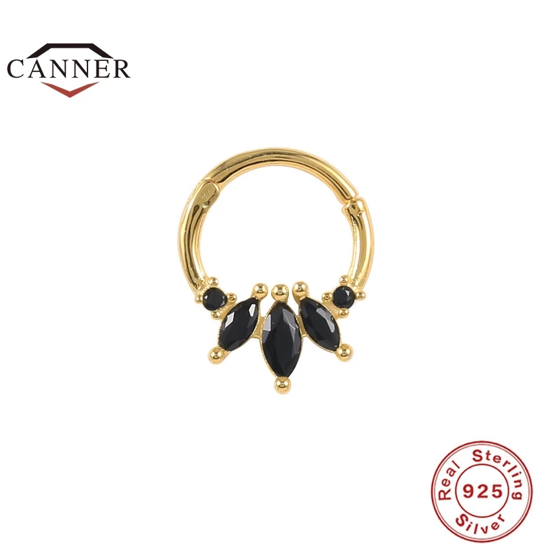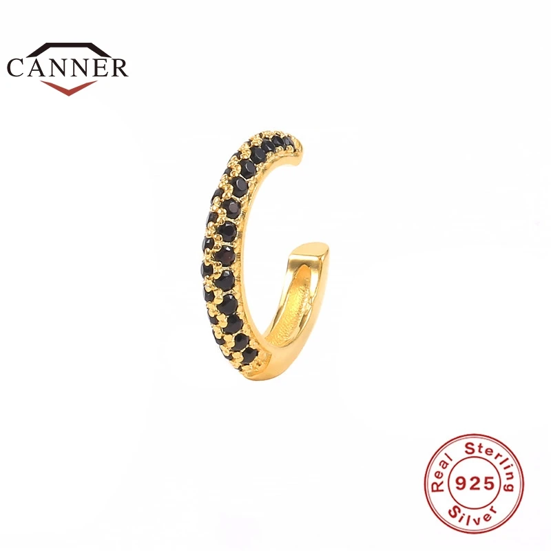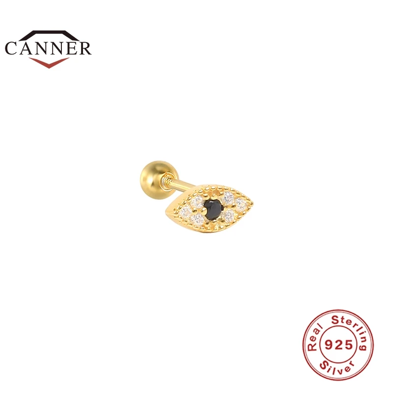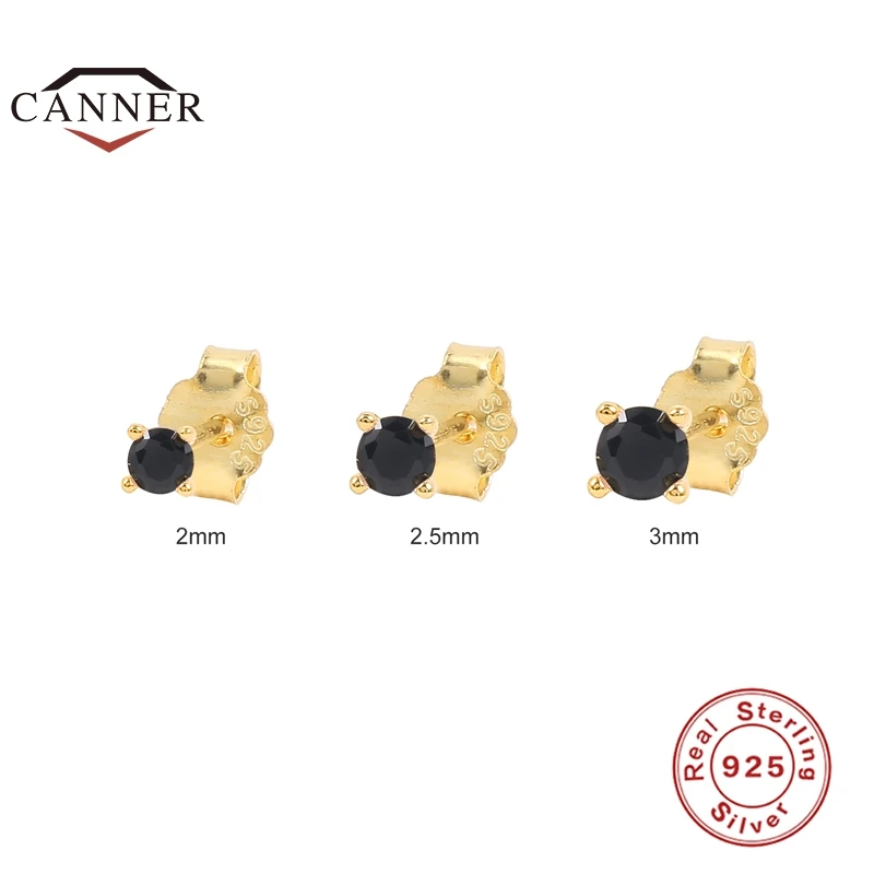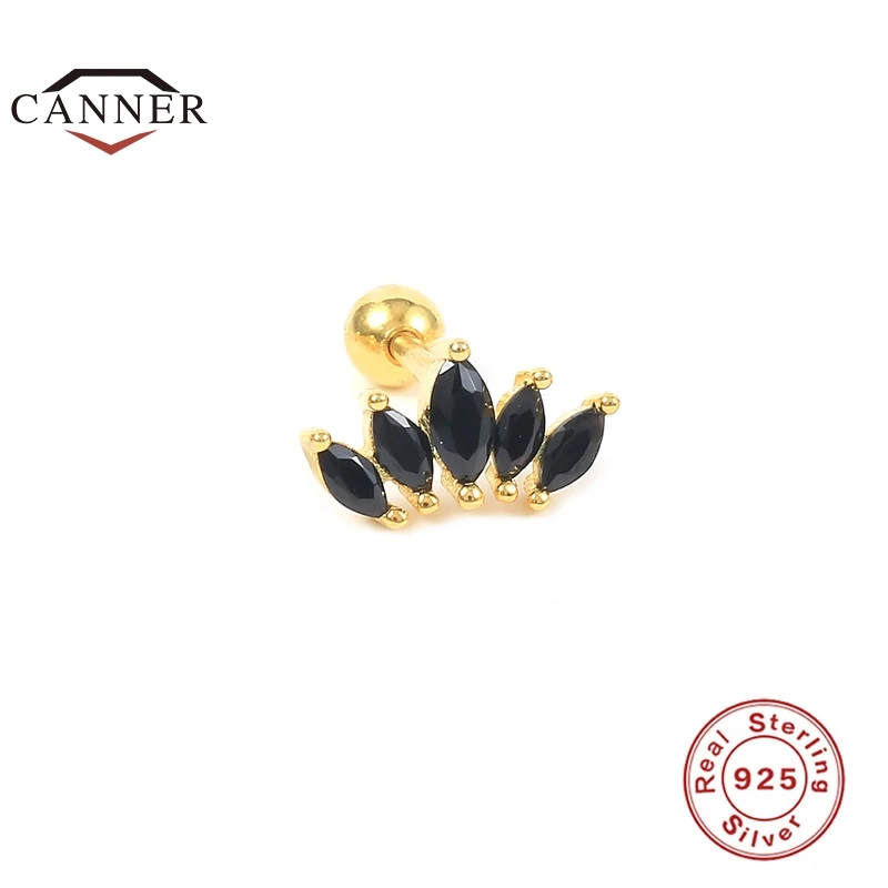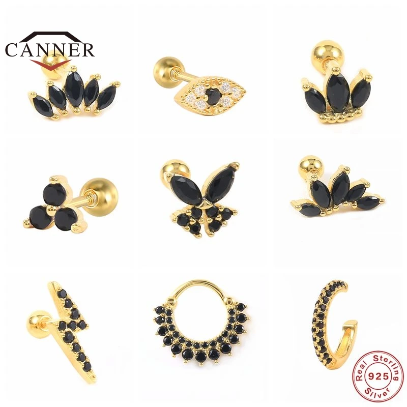 CANNER, серебро 925 пробы, черный циркон, Хрустальный пирсинг, серьги-гвоздики с молнией, женские изысканные ювелирные аксессуары для девушек