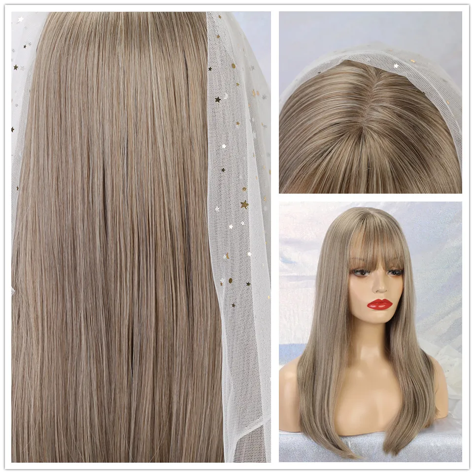 Светлые женские парики с челкой LOUIS FERRER, термостойкие синтетич...