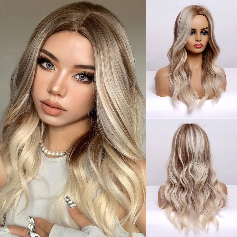 ALAN EATON, средние волнистые синтетические парики, натуральные, средняя часть, коричневый, блонд, выделка, косплей парик для женщин, Термостойкое волокно