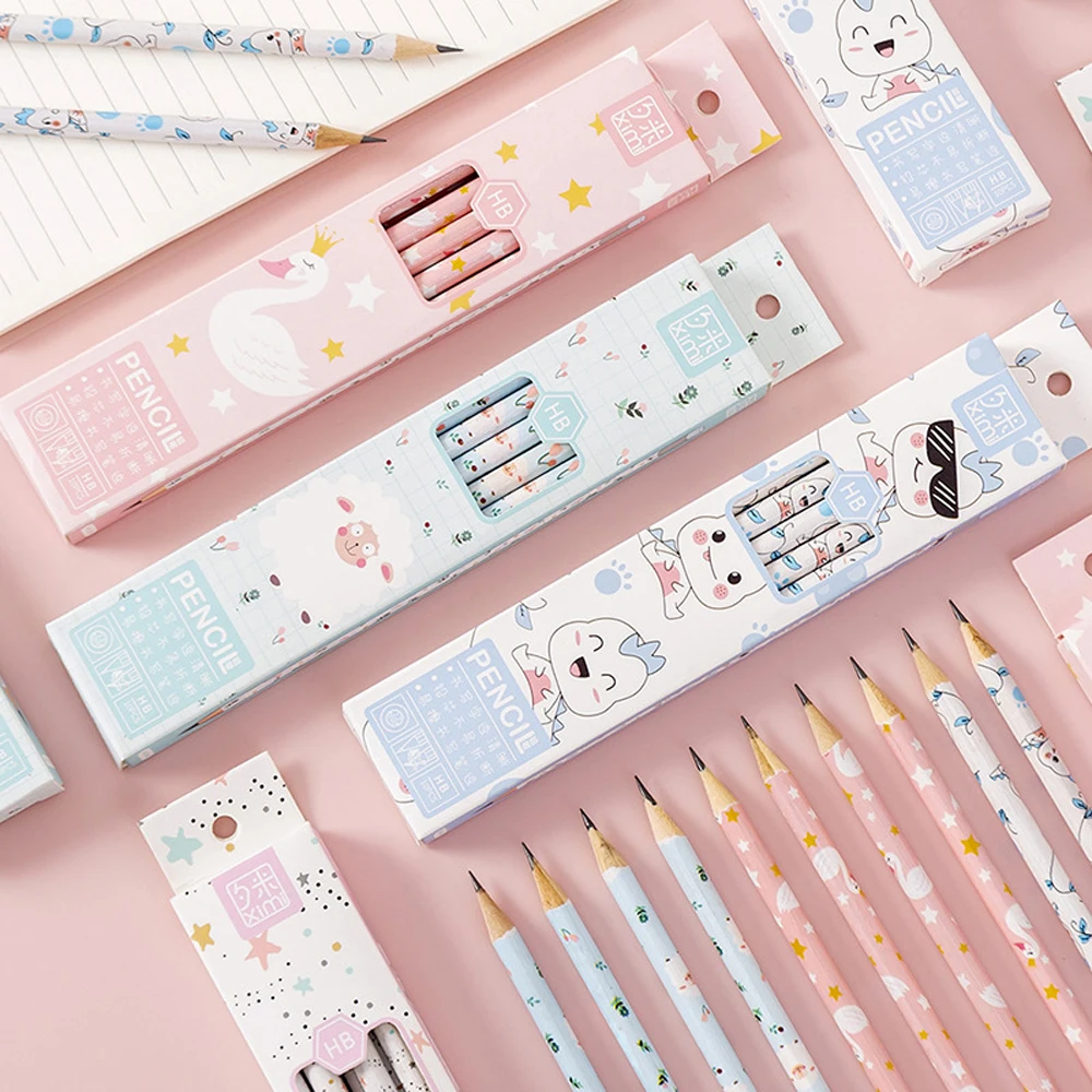 10 шт./лот, стандартный деревянный карандаш с рисунком в коробке, с ластиком, инструмент для рисования, школьные офисные карандаши для студентов, подарок для детей