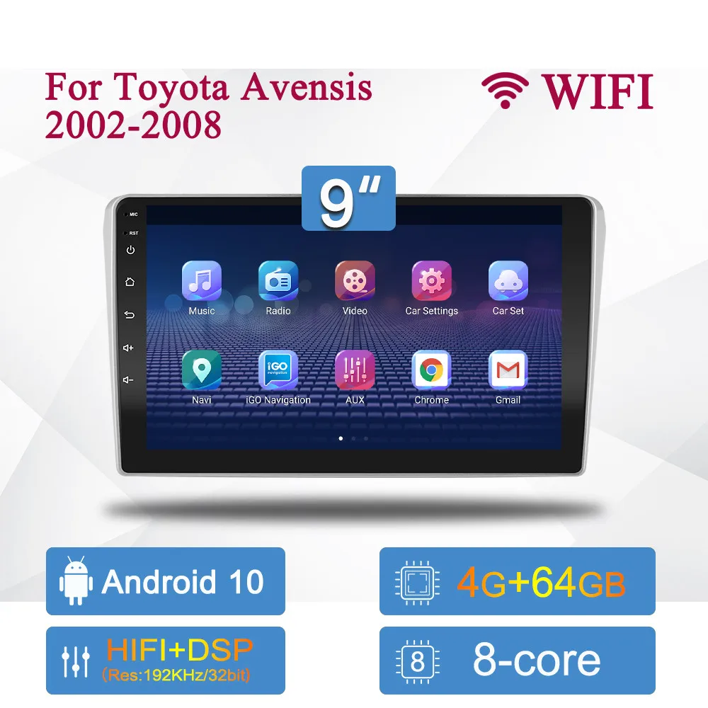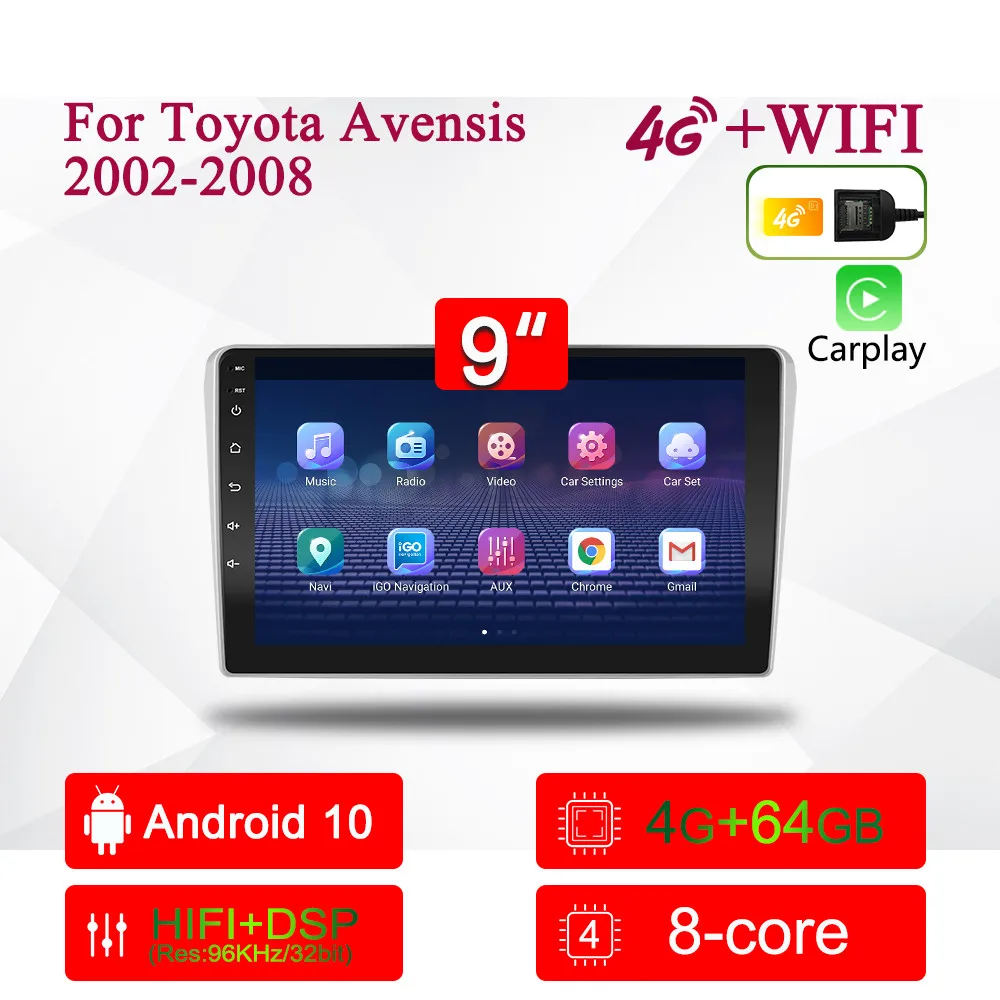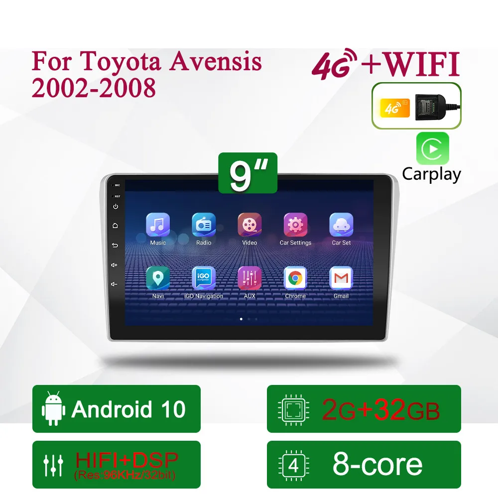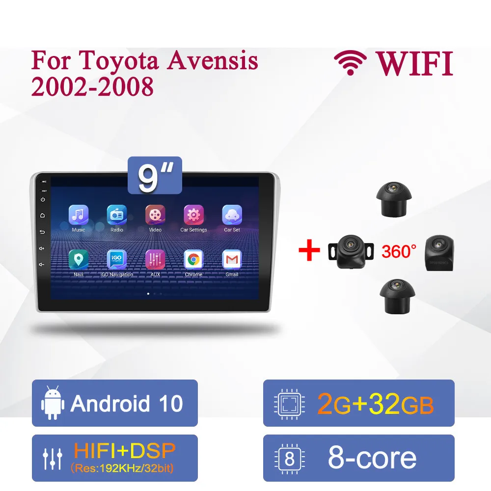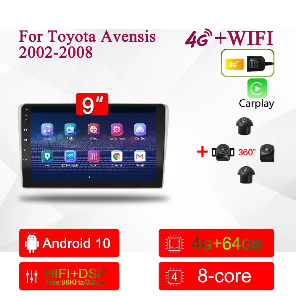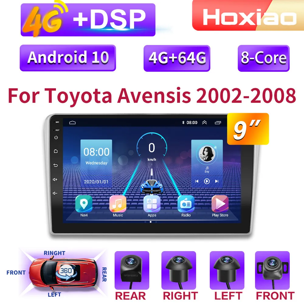 360 вспомогательный Системы 4G андроид 10 2Din автомобиль радио Мультимедиа Видео плеер для Toyota Avensis T25 2002-2008 GPS навигация GPS аудио