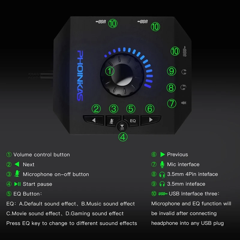 Аудиоадаптер Phoinikas T10 usb-хаб, с несколькими переключателями, ...
