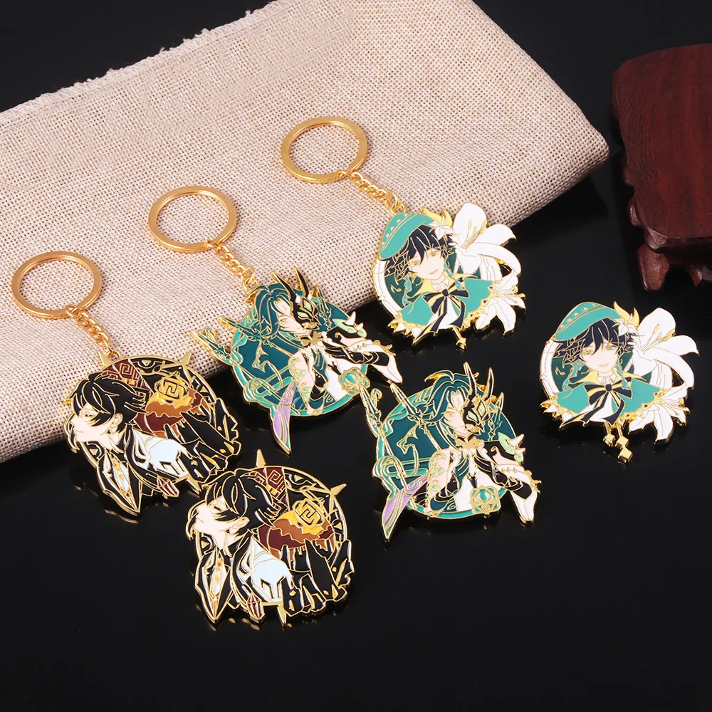 Брелок для ключей с фигуркой из игры Genshin Impact, крутой брелок Venti Zhongli Xiao для женщин и мужчин, ювелирные изделия