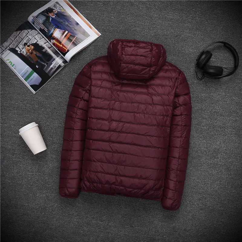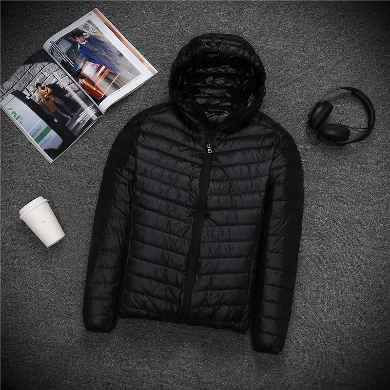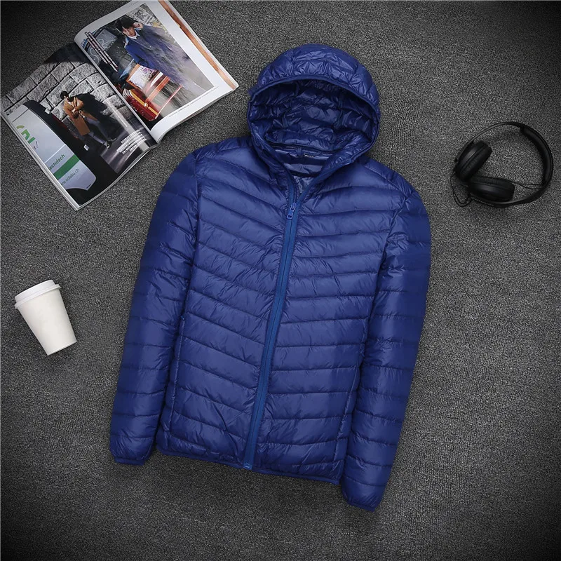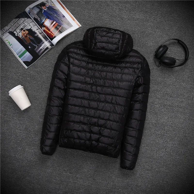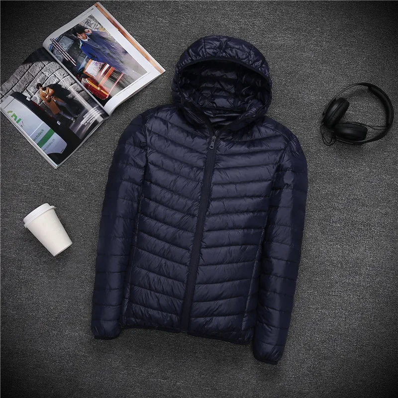 Ультра-светильник, портативный пуховик для мужчин, Осень-зима, Повседневные Дышащие пальто с капюшоном, верхняя одежда, ветрозащитные Белые парки на утином пуху 6XL