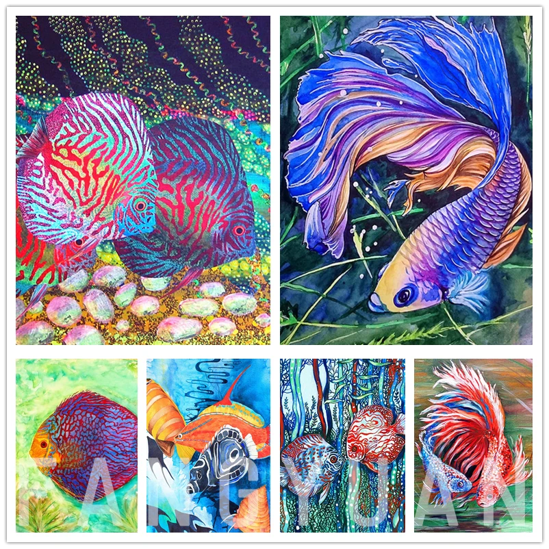 Картина из страз 5D сделай сам, вышивка крестиком, мозаика для рыба...