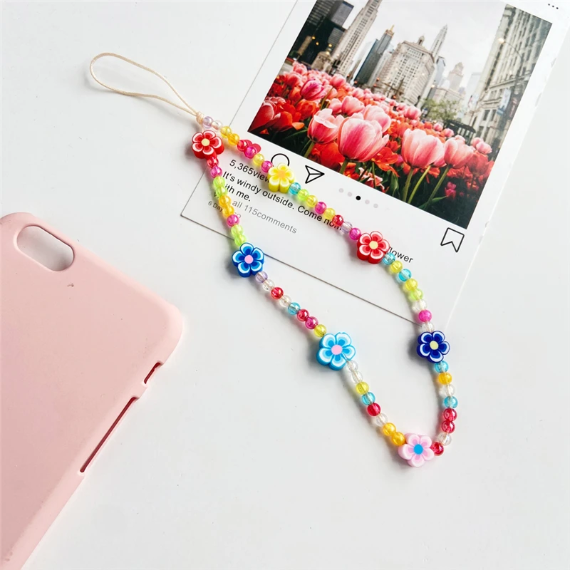 Ремешок-цепочка для телефона Женский, цветной, с акриловыми бусинами, 2021, 17 км, мобильный телефон