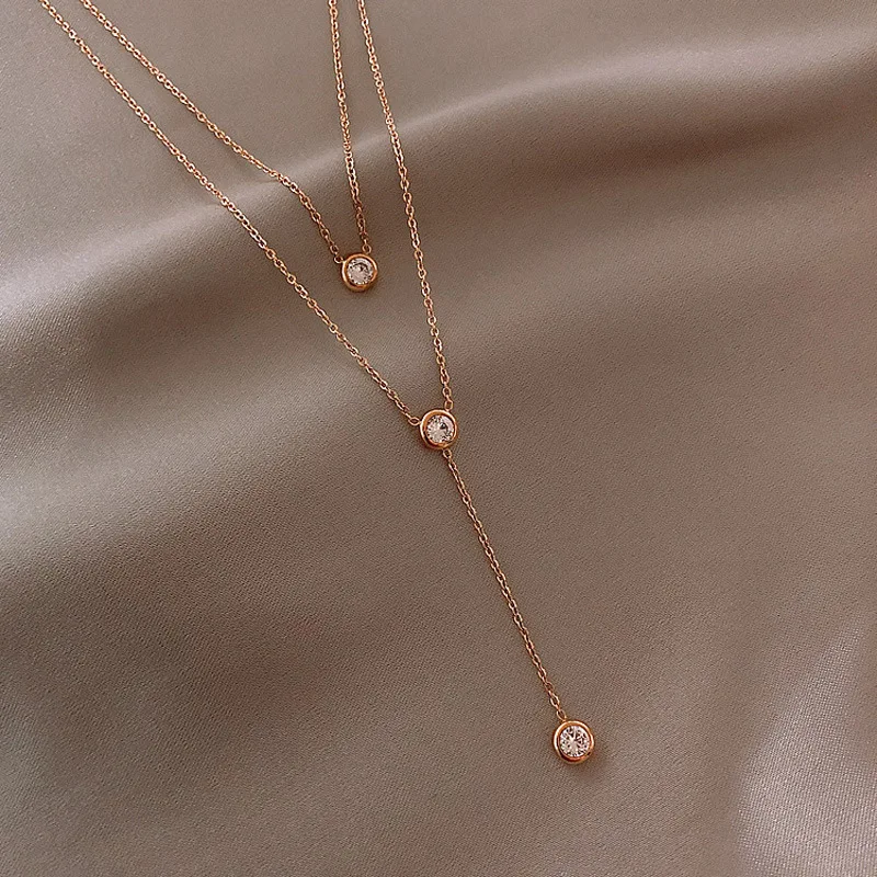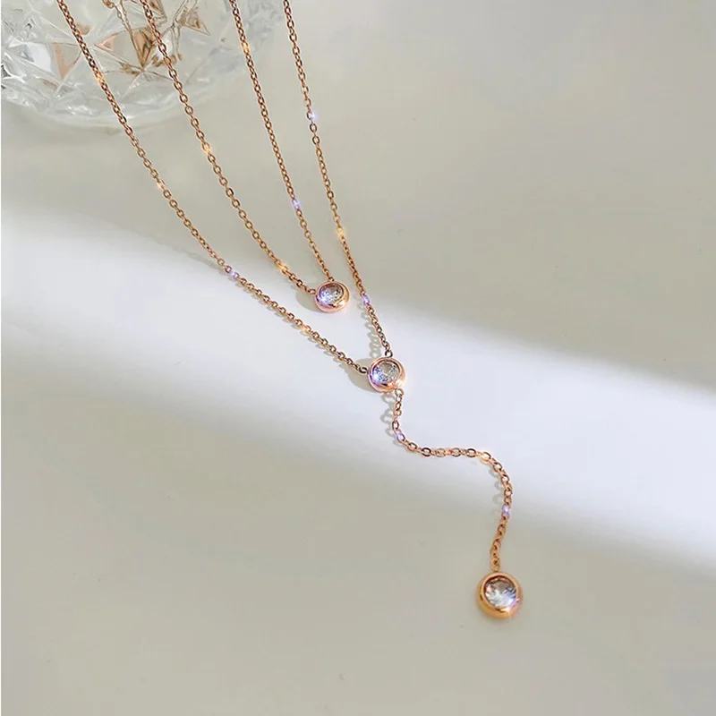 Супер блестящее циркониевое ожерелье из титановой стали для женщин простой золотистый двойной Слои Подвески модные, ювелирное изделие, подарок