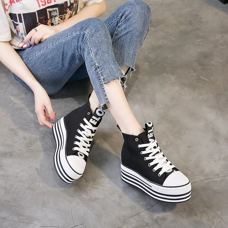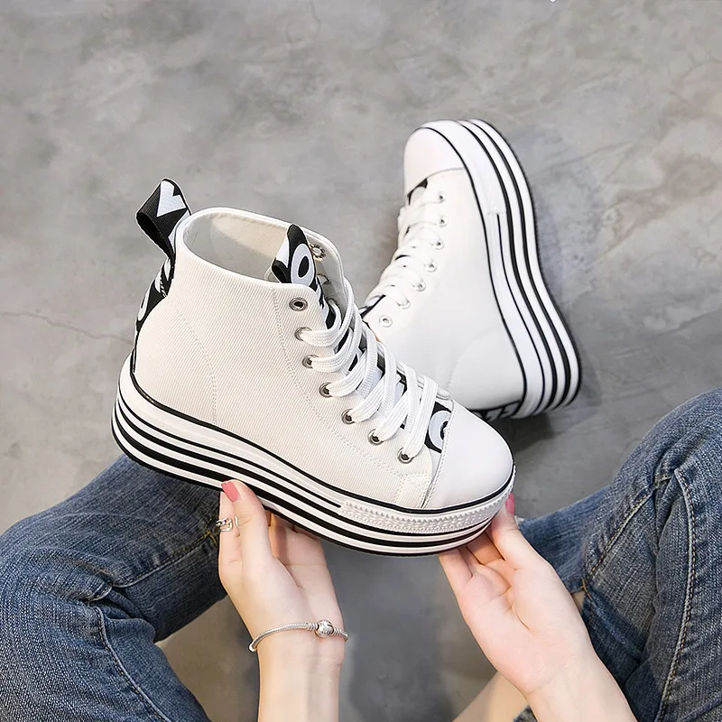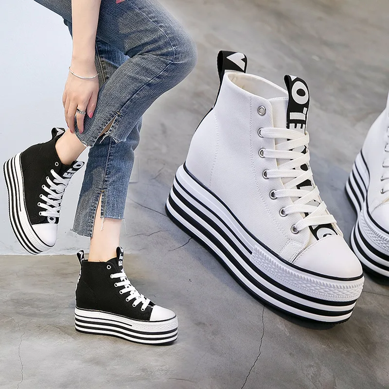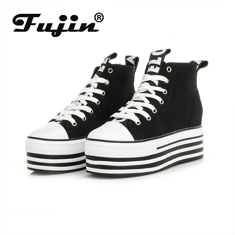 Fujinбелые ботильоны на очень высокой платформе с высоким берцем; Женская повседневная обувь для отдыха на массивной танкетке, увеличивающая рост