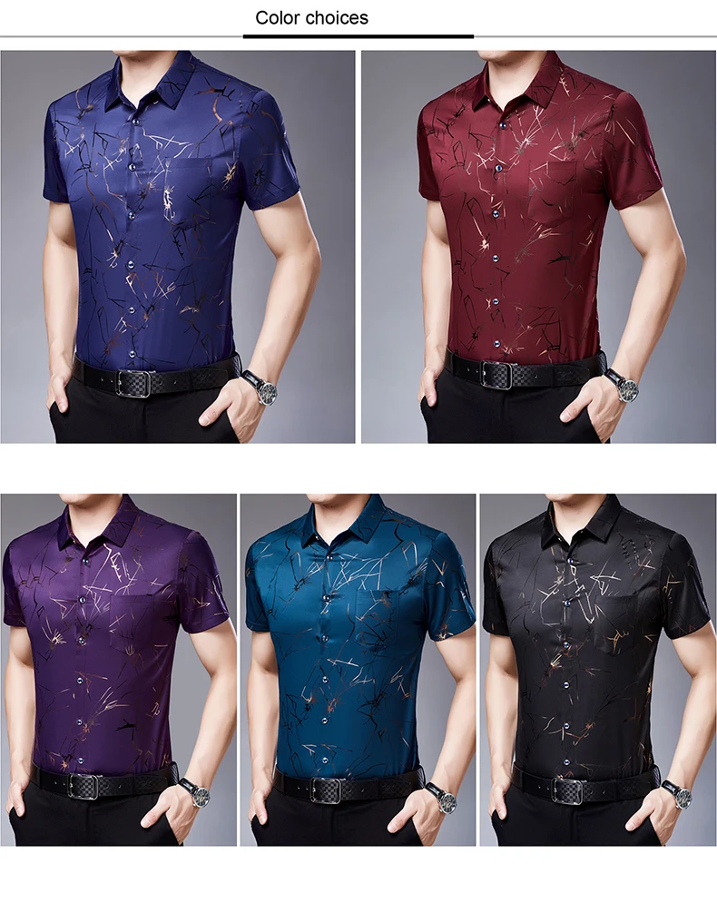 Мужская приталенная рубашка, Повседневная шелковая рубашка с коротк...