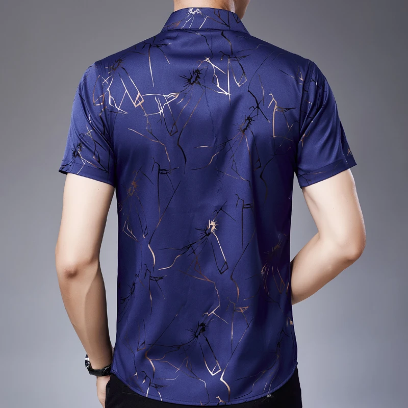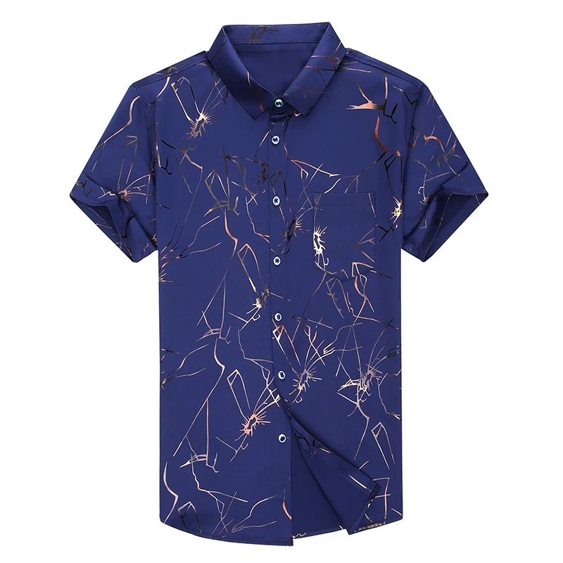 Рубашка мужская с принтом, шелковая Хлопковая сорочка с коротким ру...