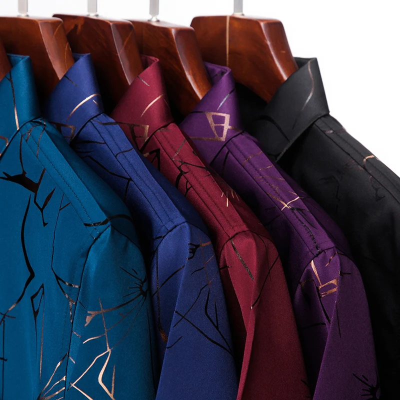Рубашка мужская с принтом бабочки, шелковая Хлопковая сорочка с кор...
