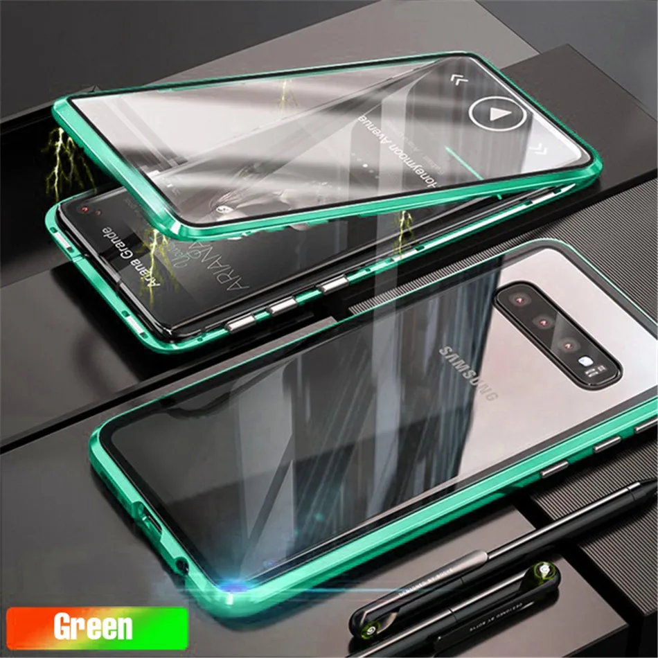 Магнитный металлический чехол для Samsung A70 A50 A51 A31 A10 A20S A12 M21 S10 S20 Plus, двухсторонний стеклянный защитный чехол, 360
