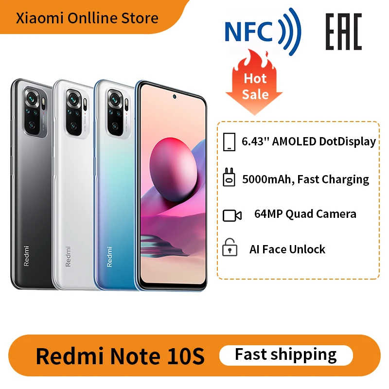 Смартфон Xiaomi Redmi Note 10S, 6 ГБ, 8 ГБ, 128 ГБ, Helio G95, AMOLED дисплей 6,43 дюйма, 33 Вт, 5000 мАч, 64 мп, четыре камеры