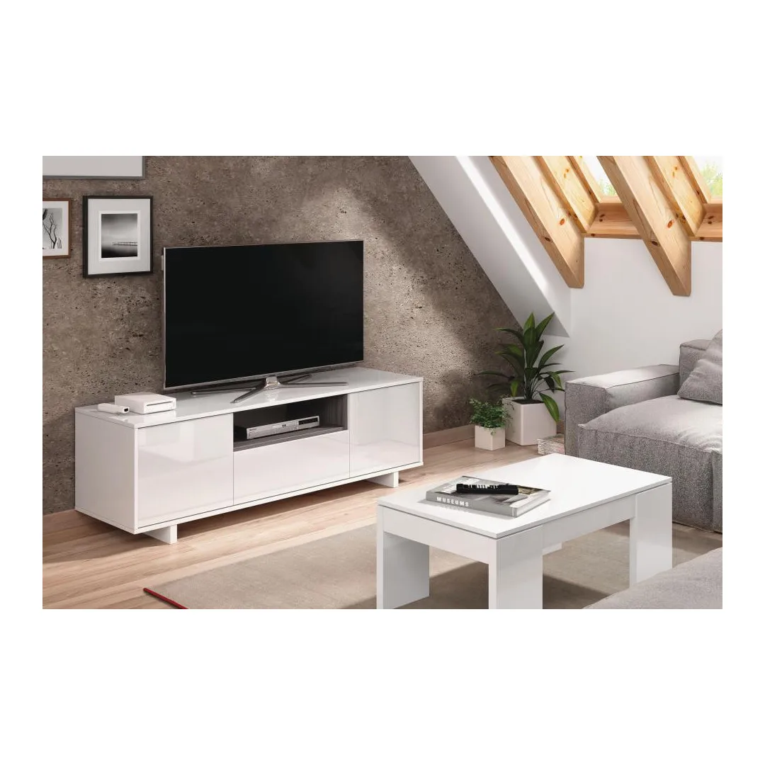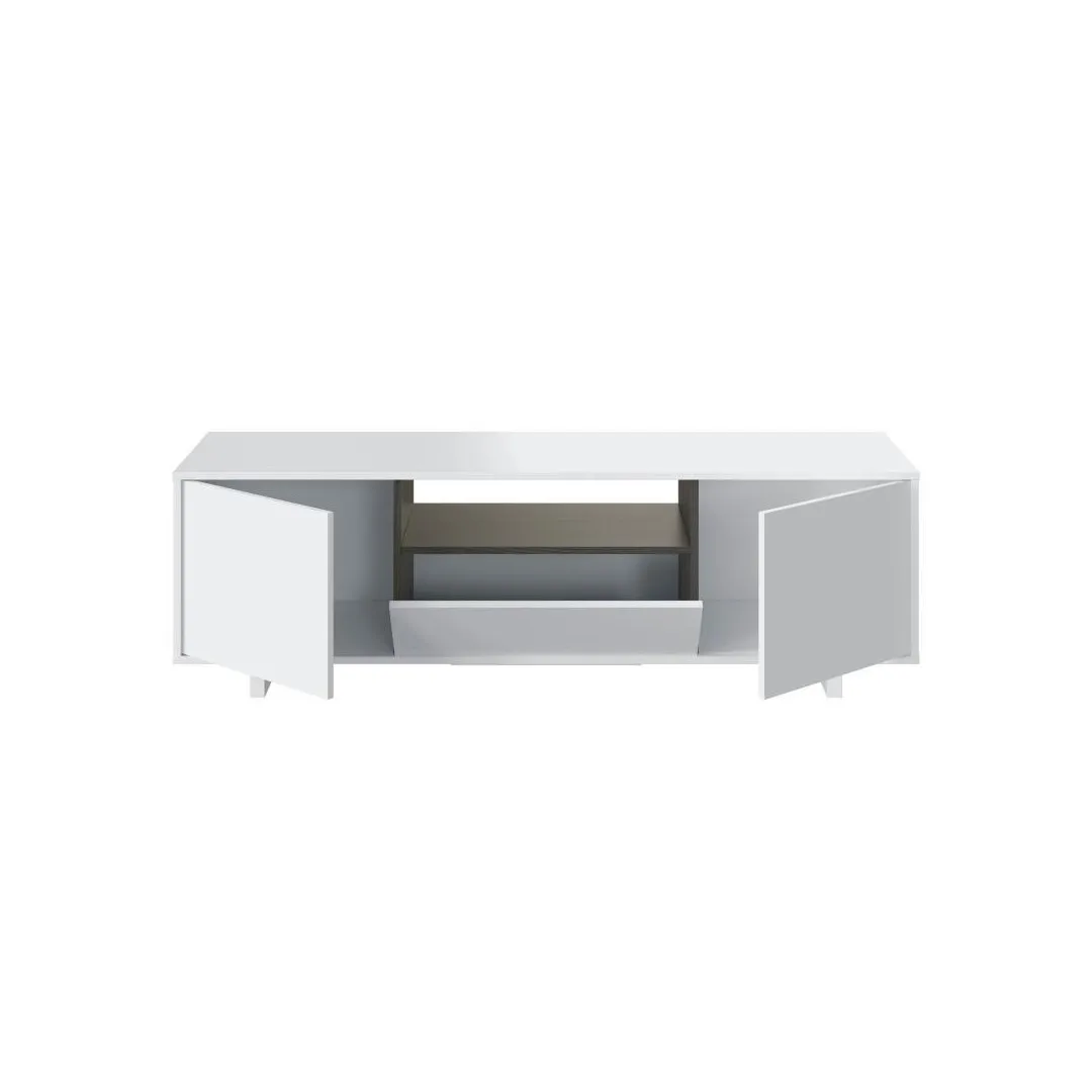 Шкаф для телевизора имеет современный и современный дизайн, а его основной тон-яркий белый, но также имеет детали в пепельно-сером цвете. Конструкция мебели состоит из 3 различных пространств с закрытыми дверями и пары открытых полок, которые идеально подходят для электронных устройств. Закрытая зона очень широкая и работает для хранения книг, фильмов, домашней мебели. Модуль поддерживает общий вес до 40 кг, и вы можете разместить нужный размер экрана с полной уверенностью. В нижней части шкафа у вас есть ABS шпильки, которые заботятся о снятии шума и защите его, чтобы он не поцарапал или не повредил при движении. Эта мебель требует сборки (Включает инструкции и все необходимые детали). Обеспечивает послепродажное обслуживание 100% удовлетворение.