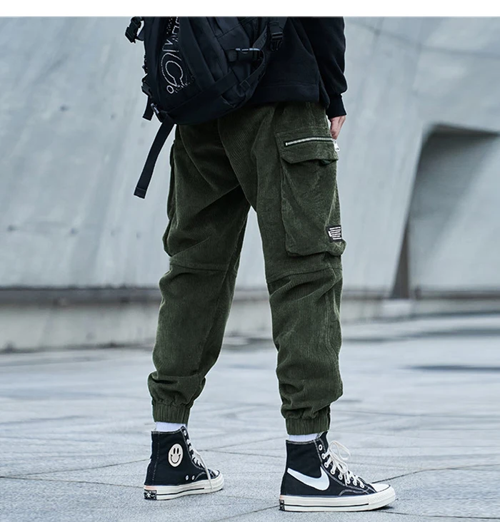 2021 хип-хоп вельветовые брюки-карго, Мужская Уличная одежда, лоскутные Мужские Брюки с карманами, хлопковые брюки большого размера в стиле Харадзюку, штаны для бега