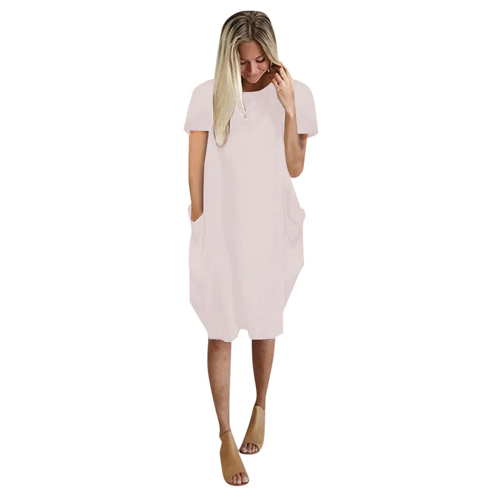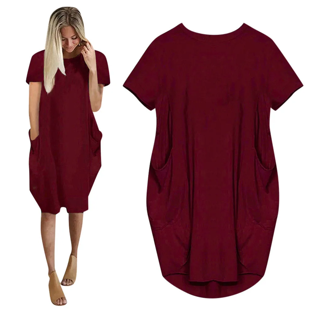 Женское платье с коротким рукавом, свободное, с карманами, летнее, 2021