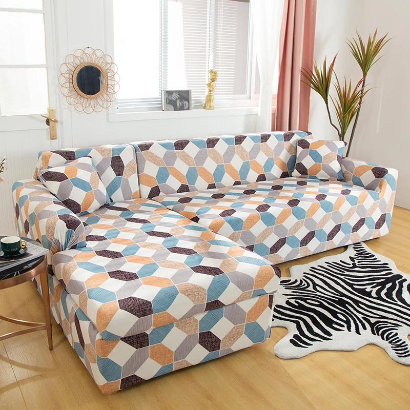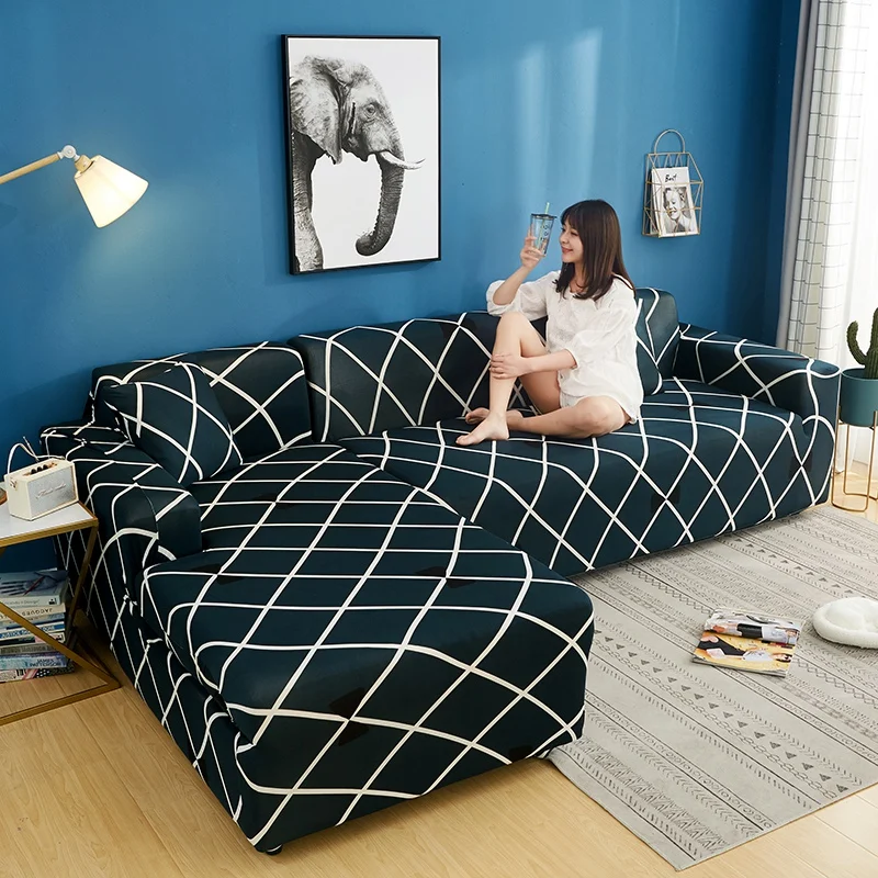 Квадратные решетчатые чехлы для диванов с принтом для гостиной, защита мебели, пылезащитные эластичные растягивающиеся Чехлы для L-образных угловых диванов