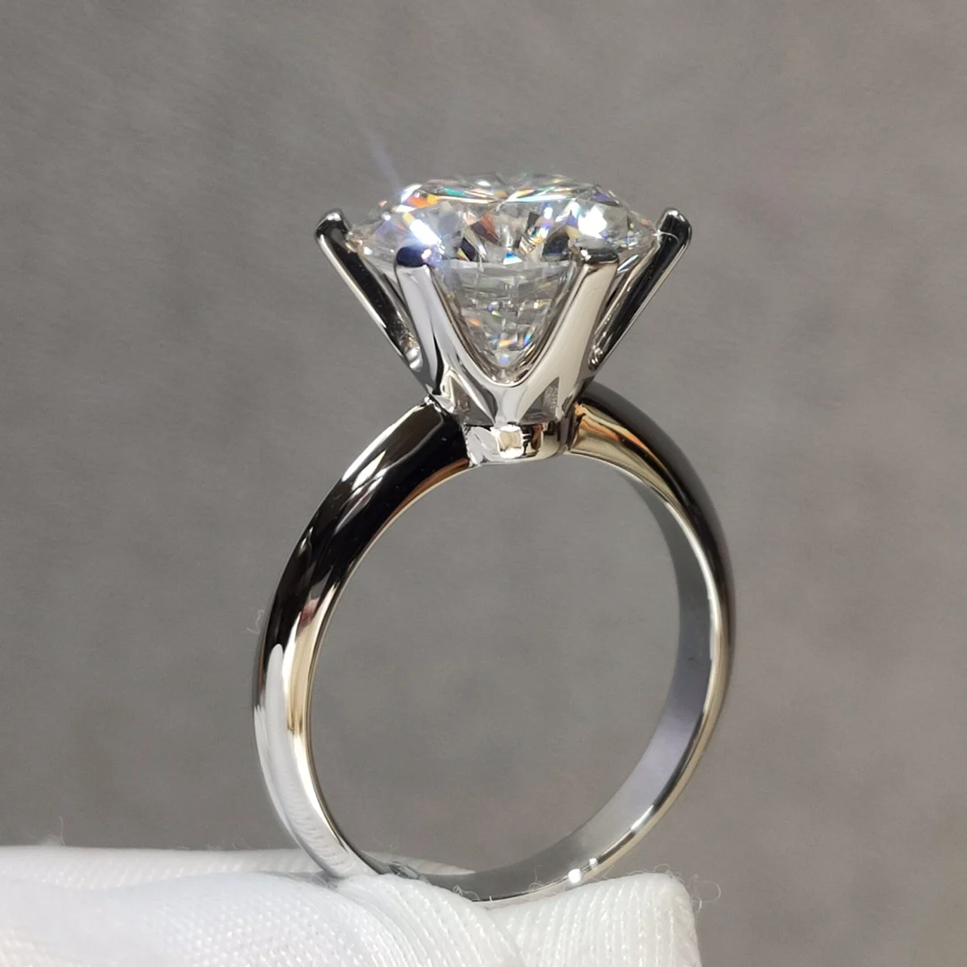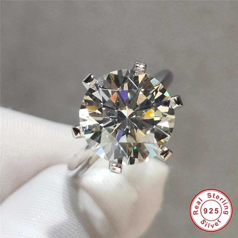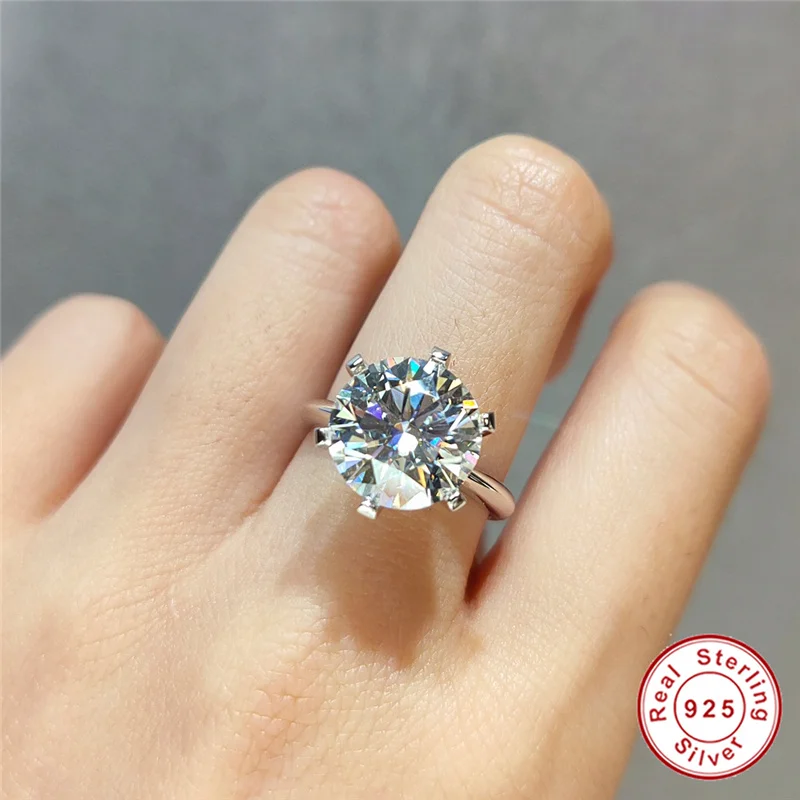 Кольцо женское из серебра 925 пробы, с муассанитом круглой формы