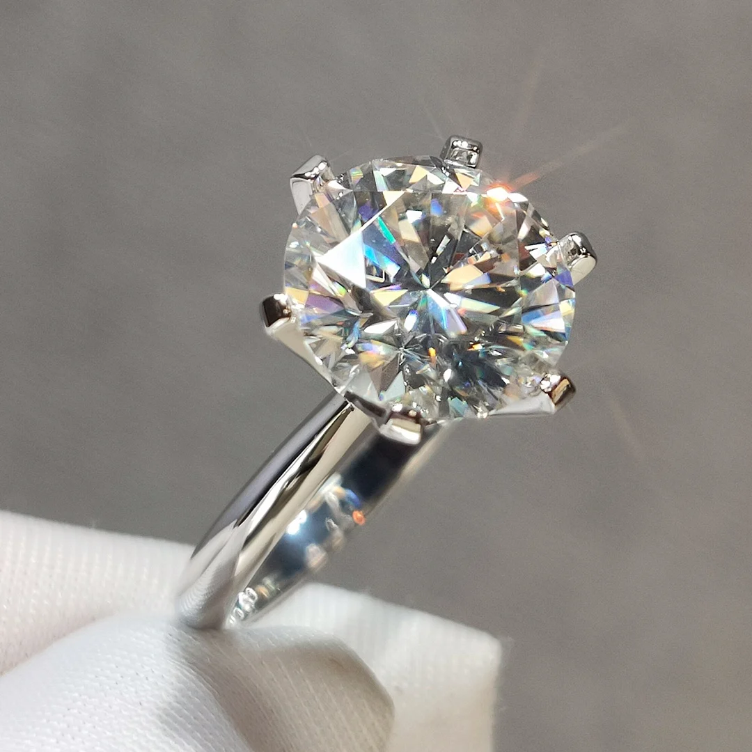 Кольцо Geoki с муассанитом, круглые ювелирные украшения с круглым з...