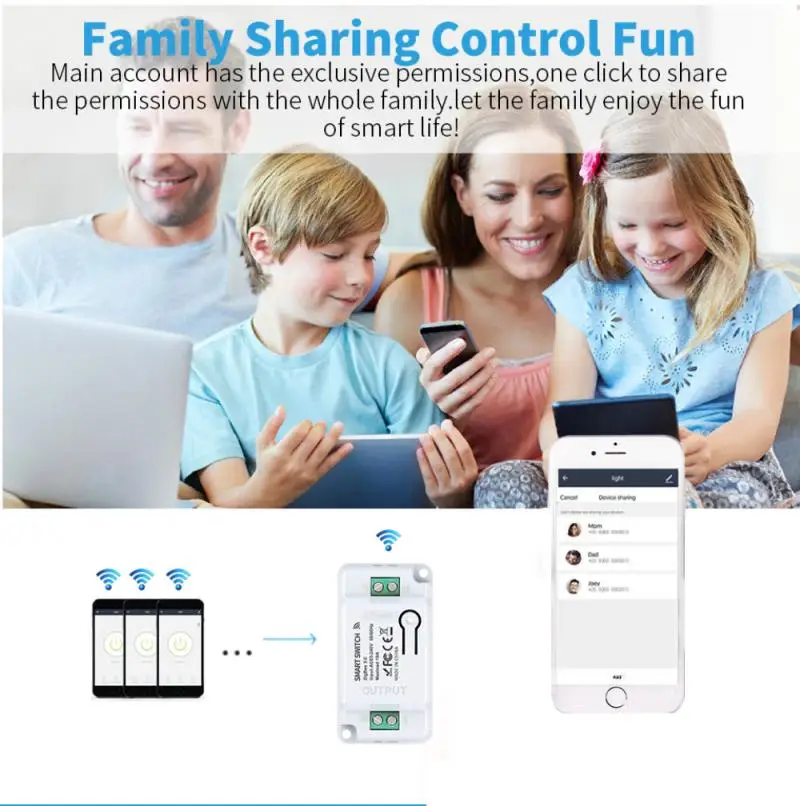 5. Совместное использование и групповое управление: совместное использование умных переключателей одним кликом с членами семьи через приложение, устранение необходимости в дополнительных процедурах настройки. У главной учетной записи есть эксклюзивные разрешения, и вы можете поделиться разрешениями eht всей семьей одним кликом, позволяя всей семье наслаждаться веселой и умной жизнью!