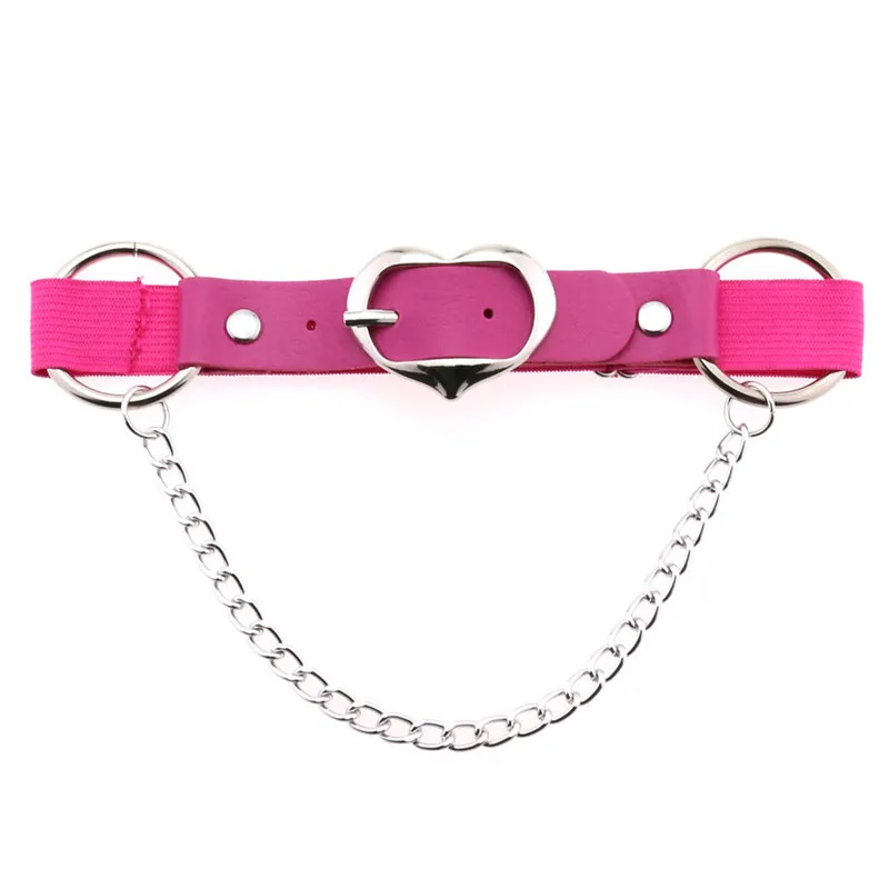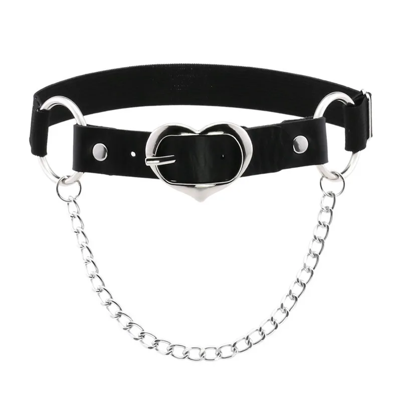 Женские регулируемые Искусственная кожа пикантные высокие облегающие ремень-подвязка ремень в готическом стиле панк, с вырезами в форме сердца, украшенные металлическими цепочками Детский костюм для вечеринок