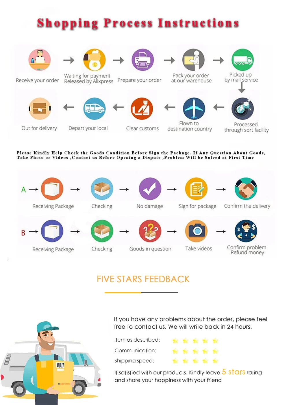 Пожалуйста, предоставьте нам Доказательства видео, если продукты имеют какие-либо проблемы после получения посылки в течение 7 дней, мы предложим замену или возврат средств после подтверждения проблемы.