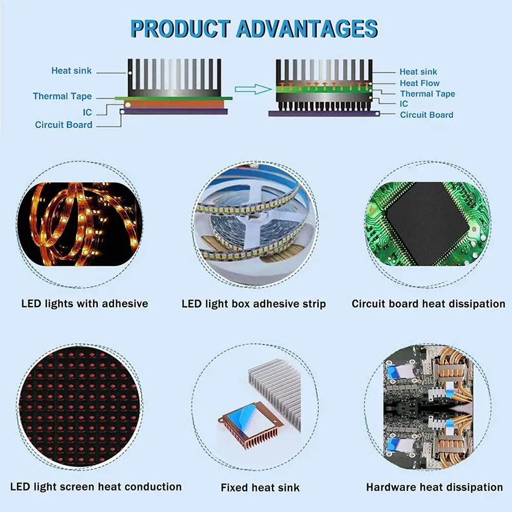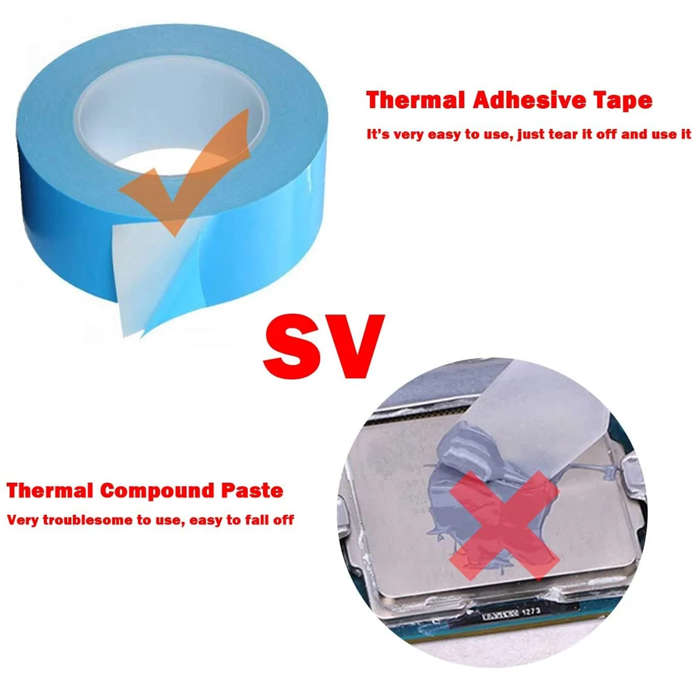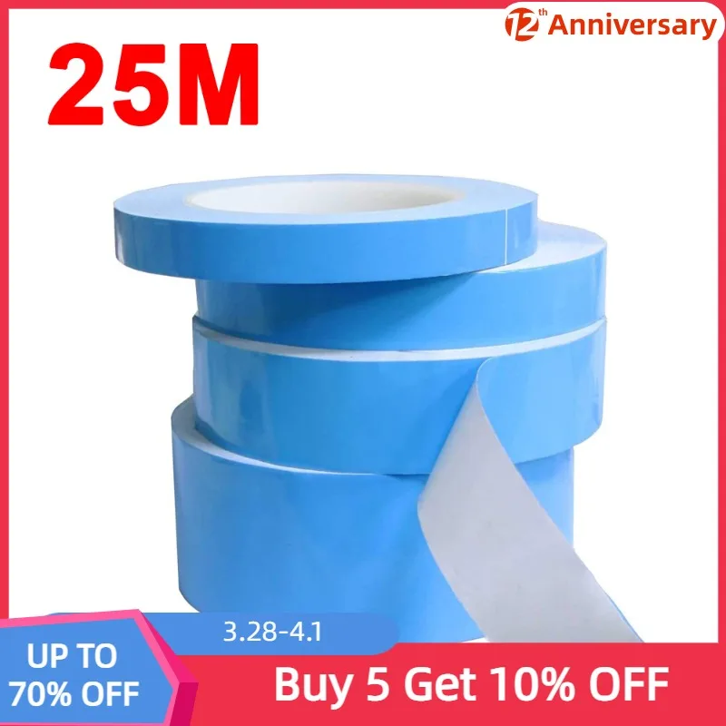 Двусторонняя Теплопроводящая лента, ширина 5-25 мм, синяя клейкая лента для охлаждения процессора, графического процессора компьютера, 25 м