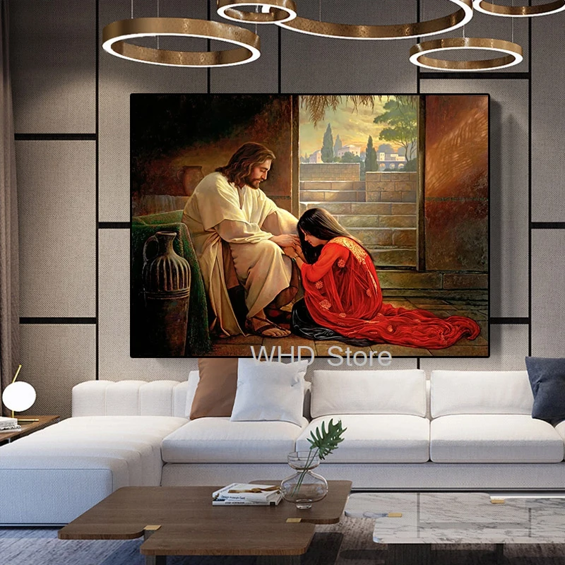 Религиозный Спаситель Иисус самаритановая женщина живопись Портрет Фигурка Холст Плакаты и принты для гостиной христианские искусства